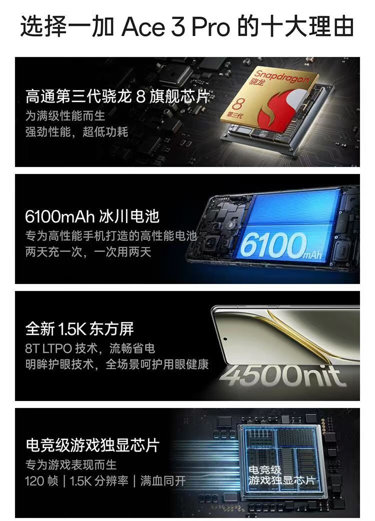 一加Ace3 Pro 骁龙8Gen3 6100mAh冰川电池 100W闪充 1.5K120Hz护眼屏 5000万三摄 防水性能续航旗舰 绿野素青 16GB+512GB 单机+原装快充+店保一年