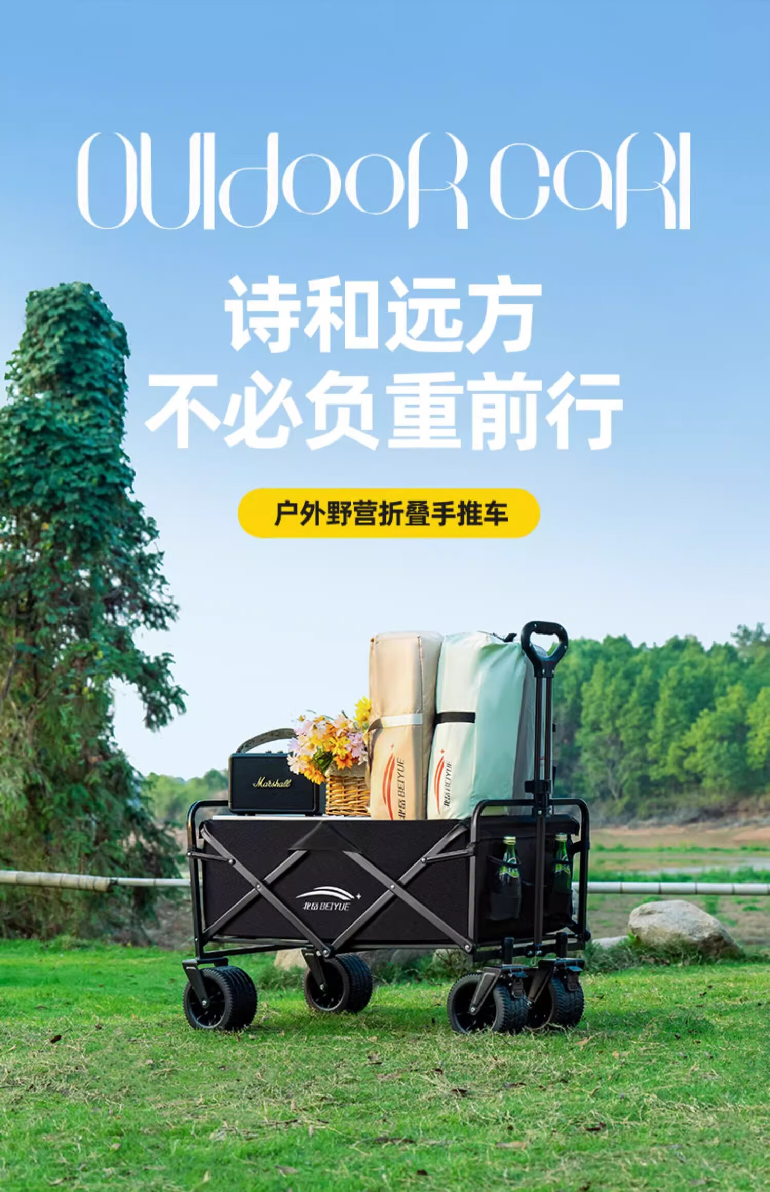 北岳户外露营小推车可折叠越野拉车手推野营车便携营地拖车拉杆摆摊车 官方正品丨现货速发 【10寸夜黑】双刹车双轴承/飞机轮