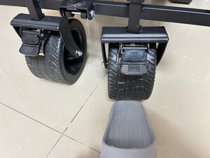 车子秒打开,袋子装拆方便,10秒内完成(图一)。买的是飞机轮子款,轮子有拖鞋那么宽(图二)。桌子可以单独拿出来用(图三)。桌子支架如果在中间位置多配一对棍子做支撑就更完美了(图四)。总体来说是非常满意的。