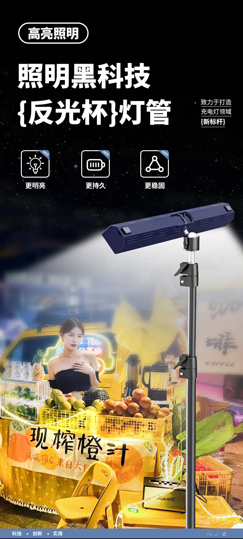 新款夜市摆摊灯可充电式照明灯多功能超长续航磁吸灯摆地摊支架灯 潮流灯管-单灯款【30000型】深蓝