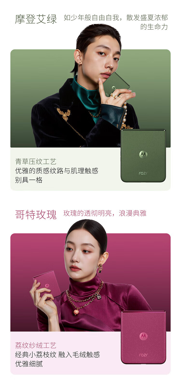 摩托罗拉【张凌赫同款】联想moto razr 60第六代折叠屏 60万次折叠认证 超大外屏 5G AI折叠屏手机 12GB+512GB 马卡龙粉 官方标配