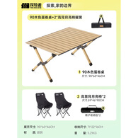 探险者露营桌椅户外折叠椅折叠桌月亮椅克米特椅便携躺椅子露营装备全套 90木色蛋卷桌+2*高背月亮椅曜黑