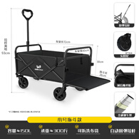 原始人露营推车营地拖车户外折叠超大野营手拉车小推车野餐车桌板 120L 升级款黑色【静音万向轮】