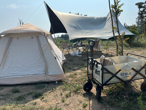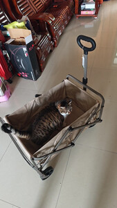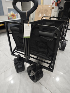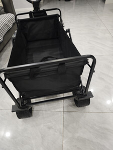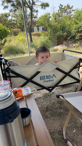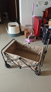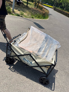 非常的小巧,折叠起来,非常容易存储车子的轮子很大很厚,比较适合各种崎岖的山路和平展的草地。然后这个车的质量非常好,它这个牛津布的很厚很厚实,嗯,然后呢也比较容易取下来清洗是近期买过的商品中最满意的折叠车了。露营的朋友们,天气温度降下来,赶快去野外吧