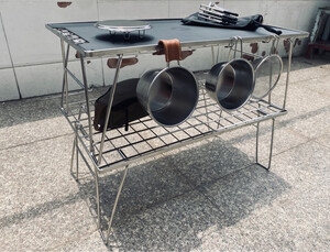 适用场景:户外露营 产品做工:非常厚实 黑色颜值非常高,携带方便,比较实用的架子,可以做置物架当桌子,可拼接也可以叠加用,值得推荐