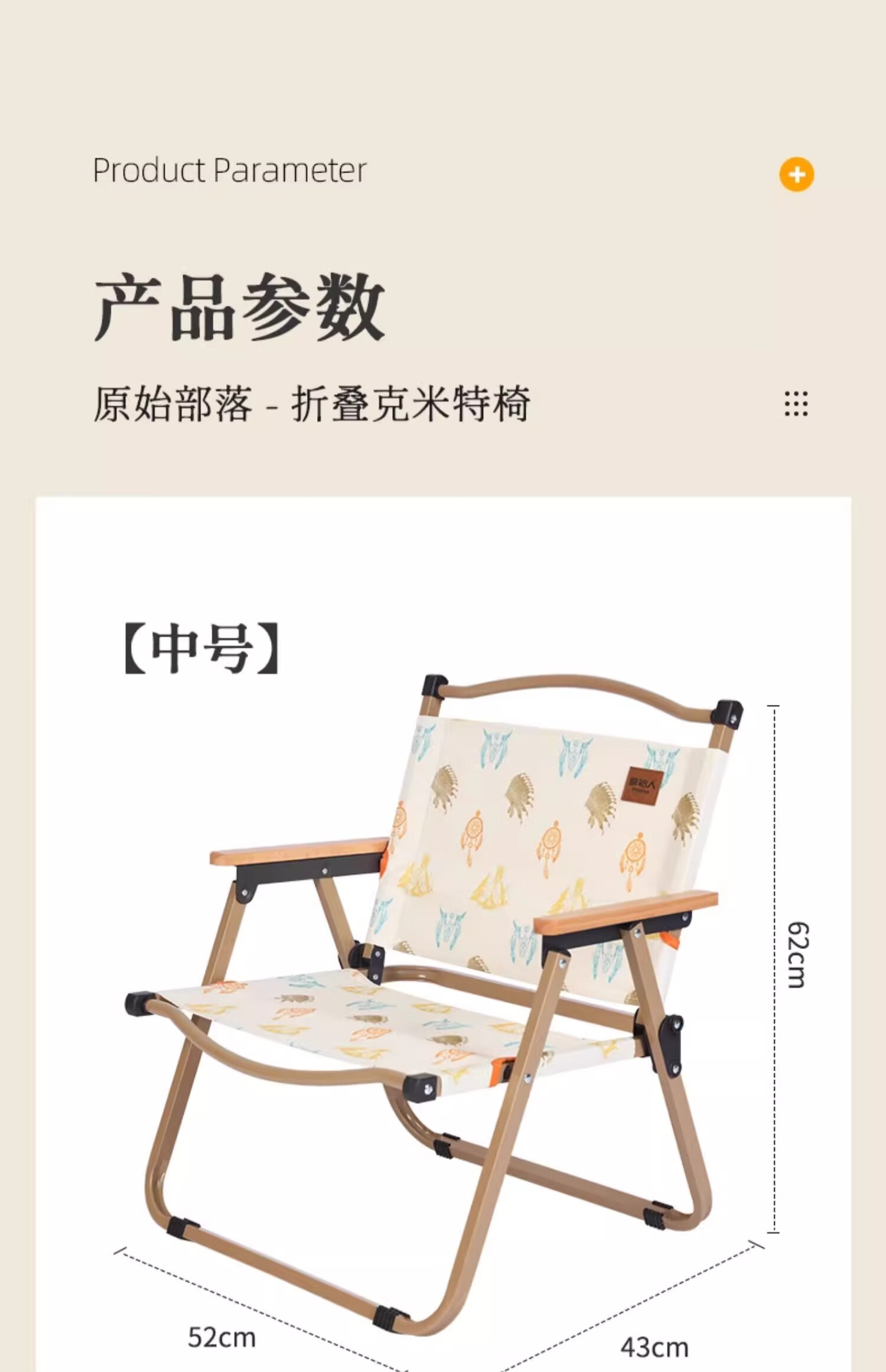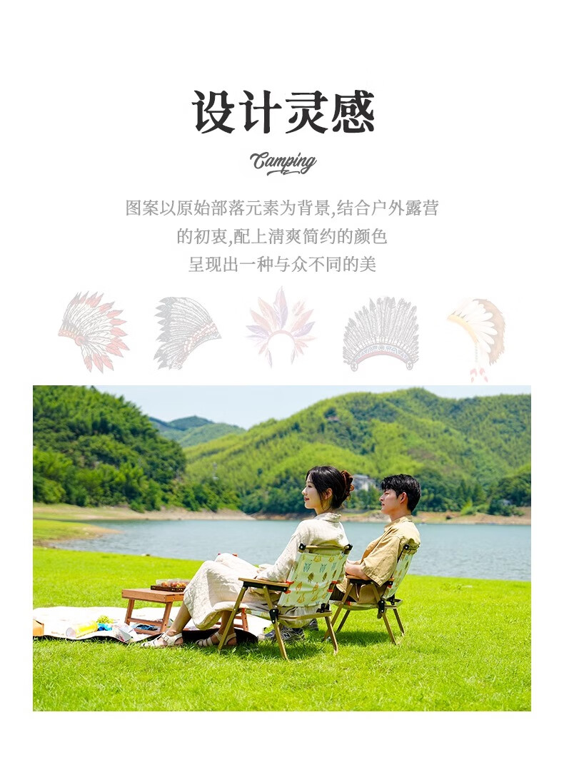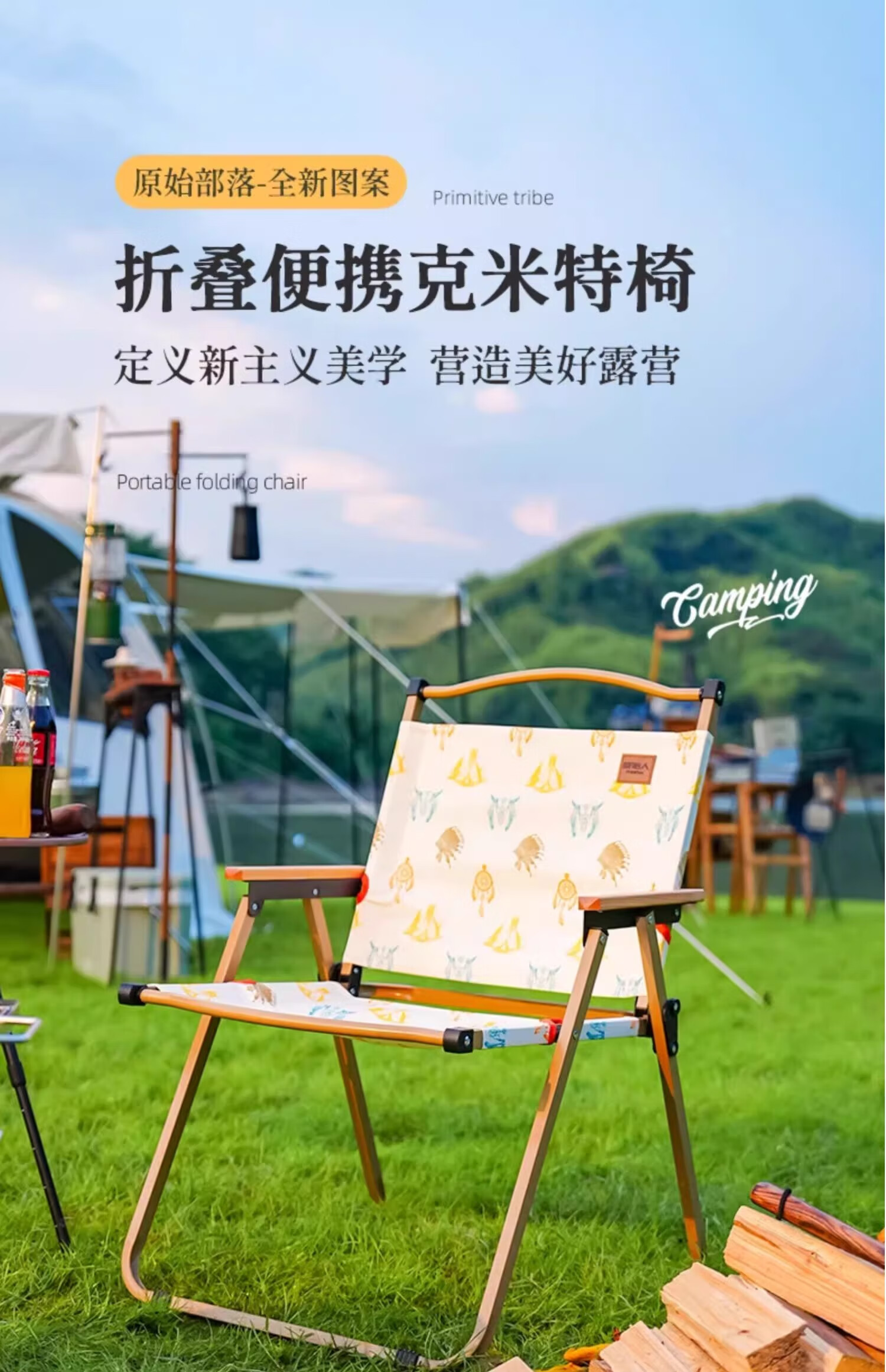 原始人户外折叠椅便携钓鱼露营椅子折叠克米特椅野餐椅椅子沙滩椅 大号原始部落【时尚新配色】