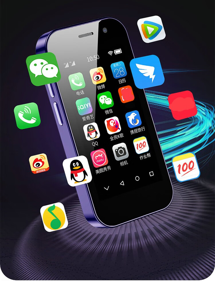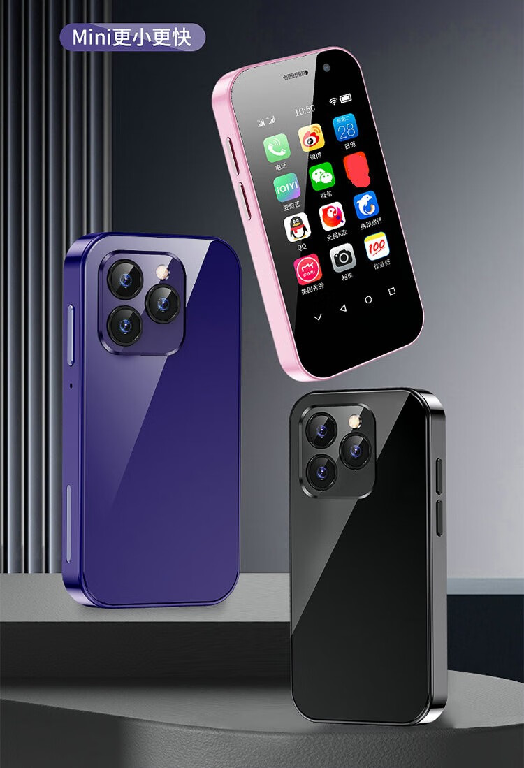索野迷你手机 智能全网通4g 小屏触控超薄 超小 热点 袖珍手机学生王者小型考试小手机 黑色4+64全网通4g 标准版
