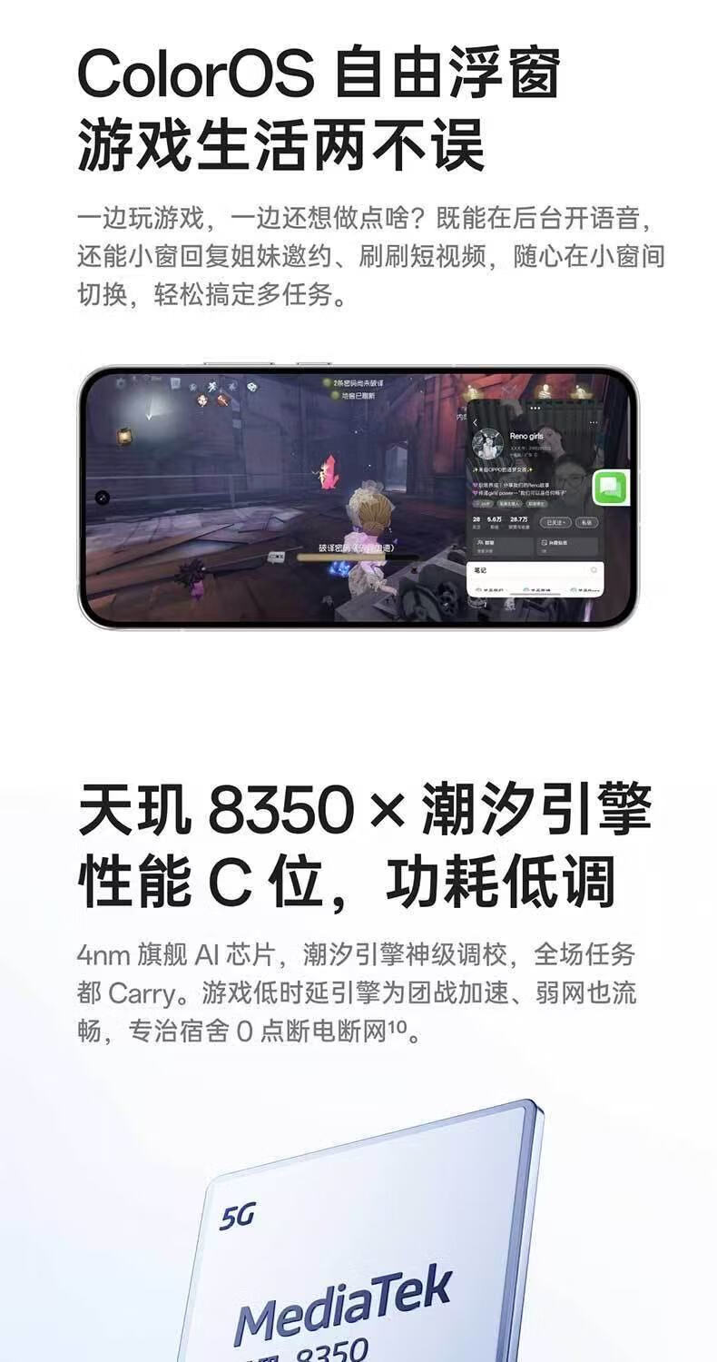 OPPO【分期免息】Reno14 高清长焦实况 全新小直屏Live图 5G全网通 Reno14人鱼姬 12GB+512GB 单机+电子保卡已注册+全国联保