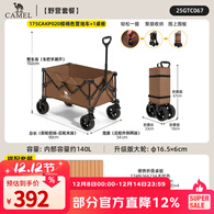 CAMEL户外聚拢露营车野餐儿童可躺营地车手推车拉车可折叠旅行车 200L ,棕褐色聚拢车+可折叠餐桌板