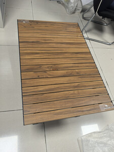 第一次在京东网购,这款桌属中号,面积宽,放套茶具很轻松。四人座没问题。材质与介绍一致,纹理还真仿木纹,身体基本结实。满意。 唯有送货员把货分包一并往当地韵达网站送,韵达是上门取件。韵达与我收货地址两三公里远。不知道他脑子装的什么。