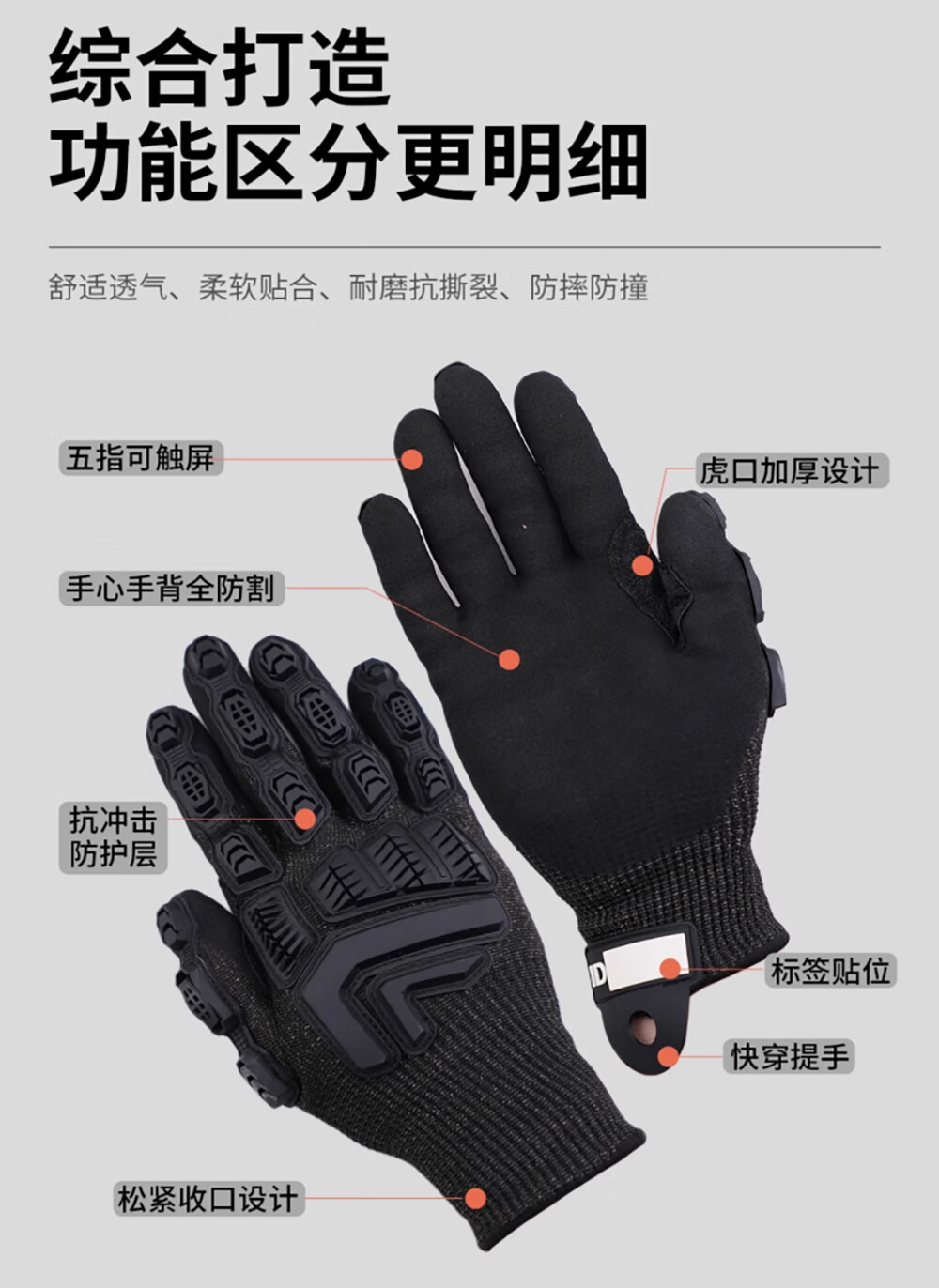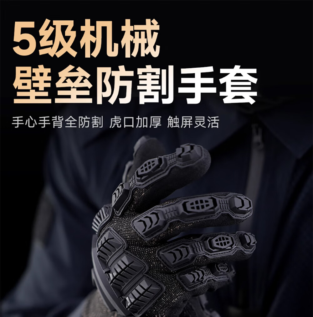 勤智乐战术防割手套机械手套防护触屏5级防割训练骑行防撞五级全指户外 5级防割手套款式一(手掌周长24cm) 均码