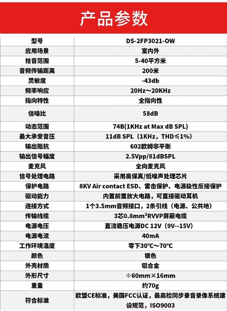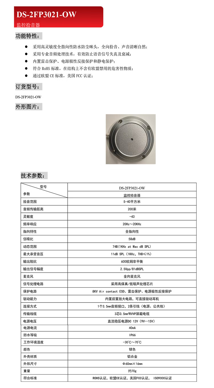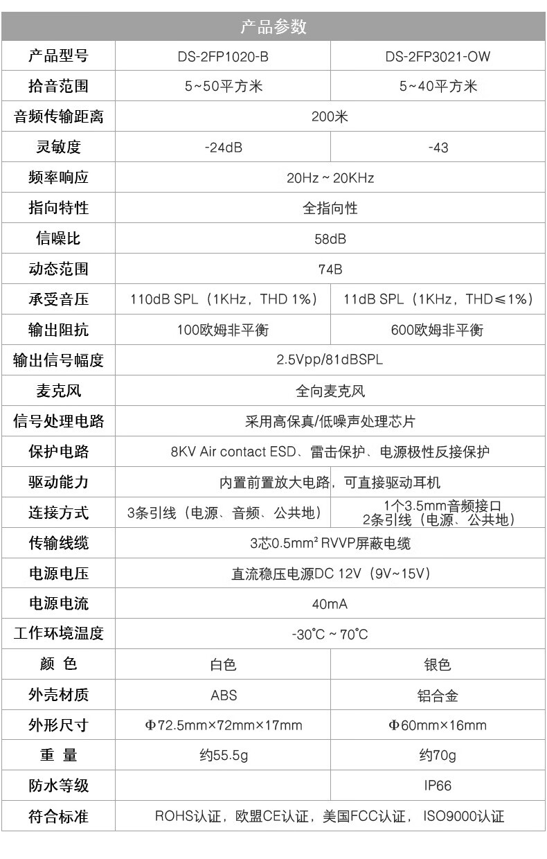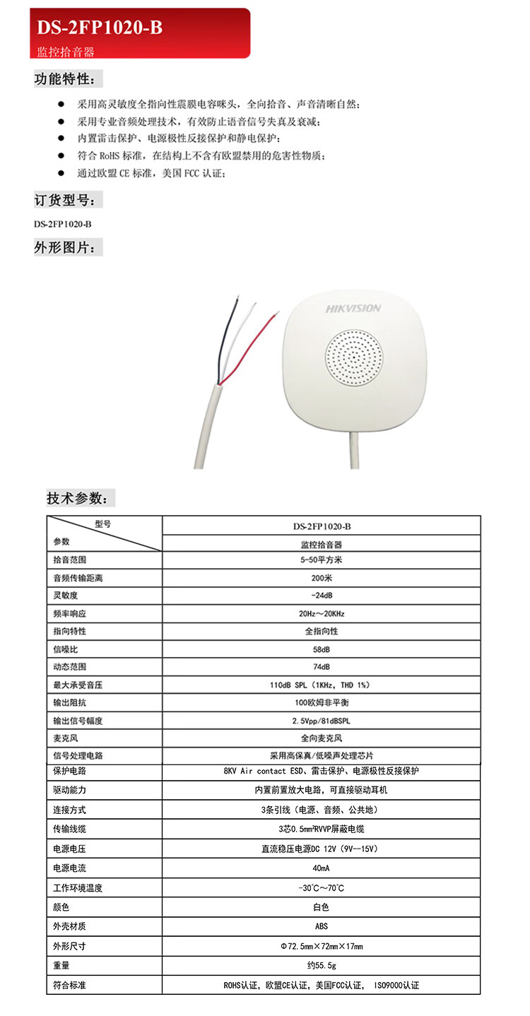 海康威视(HIKVISION)监控拾音器DS-2FP2061代替DS-2FP2020 -A DS-2FP1021 DS-2FP2061