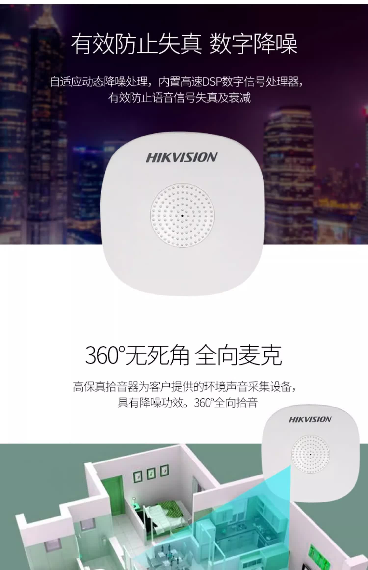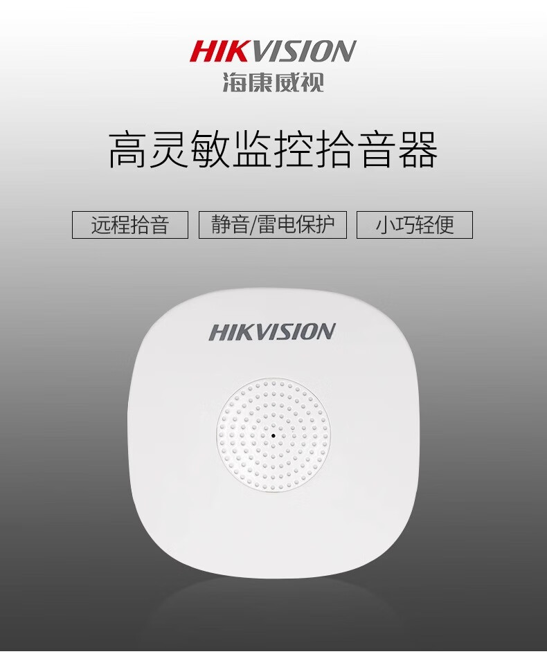 海康威视(HIKVISION)监控摄像头拾音器 音频采集器家庭商用高保真收音降噪摄像机家用拾音器清晰监控器安防设备 【室内约50㎡范围】DS-2FP1020-B 官方标配