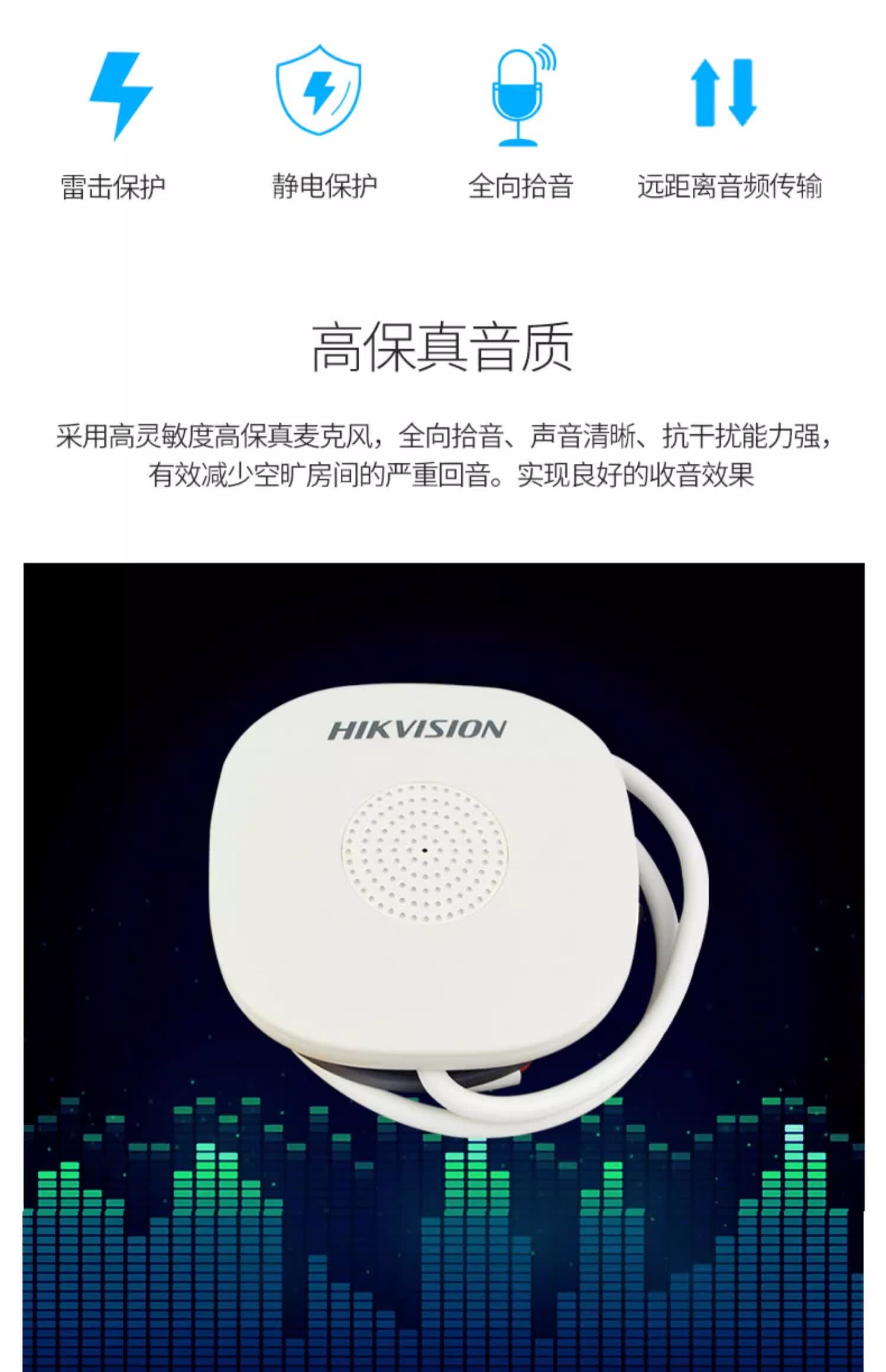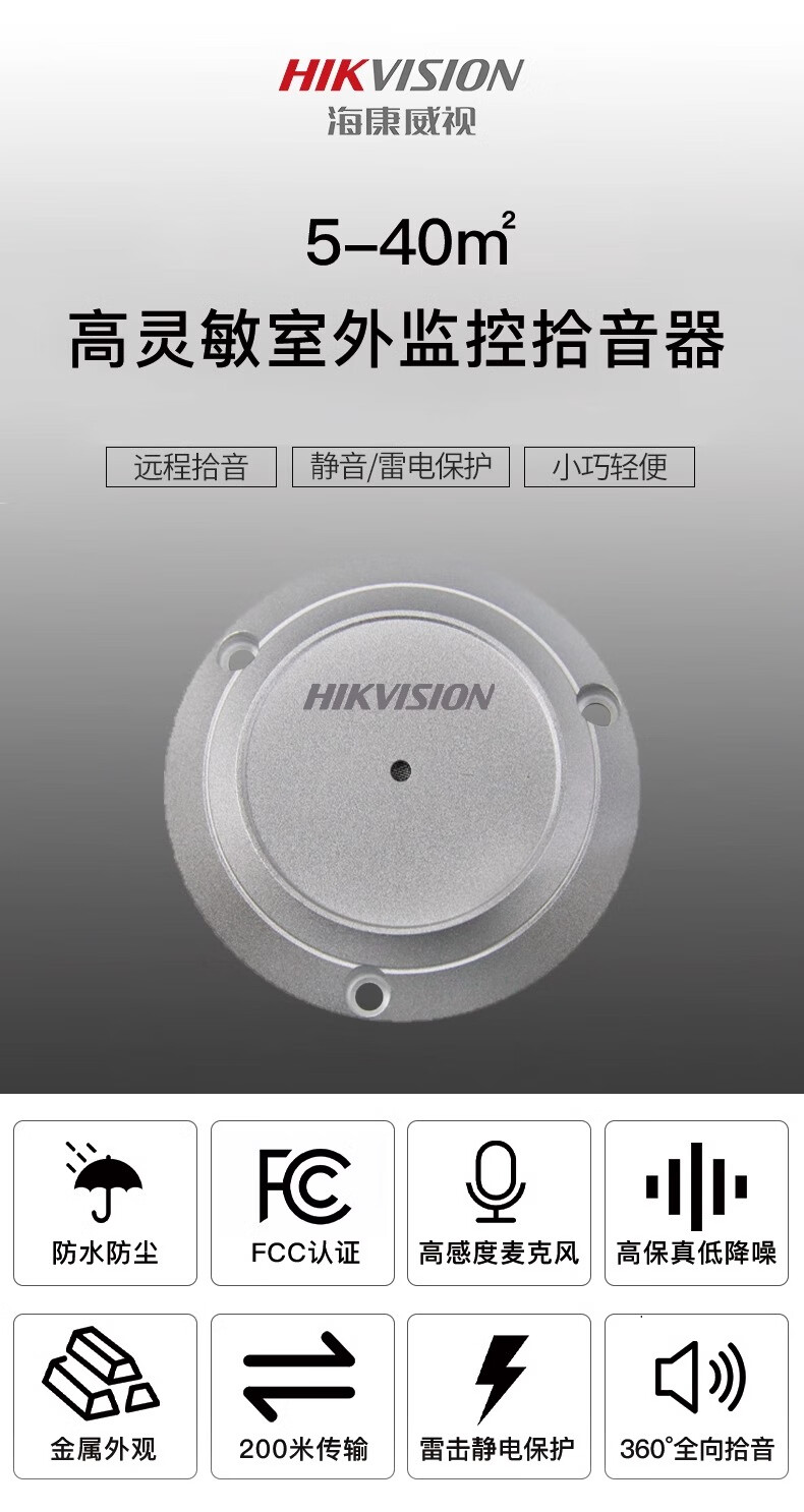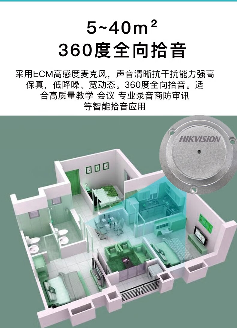 海康威视监控摄像头拾音器 音频采集器家庭工场商用高保真收音降噪摄像机 高清拾音器清晰监控器拾音器 【室内40㎡防水】DS-2FP1020-B