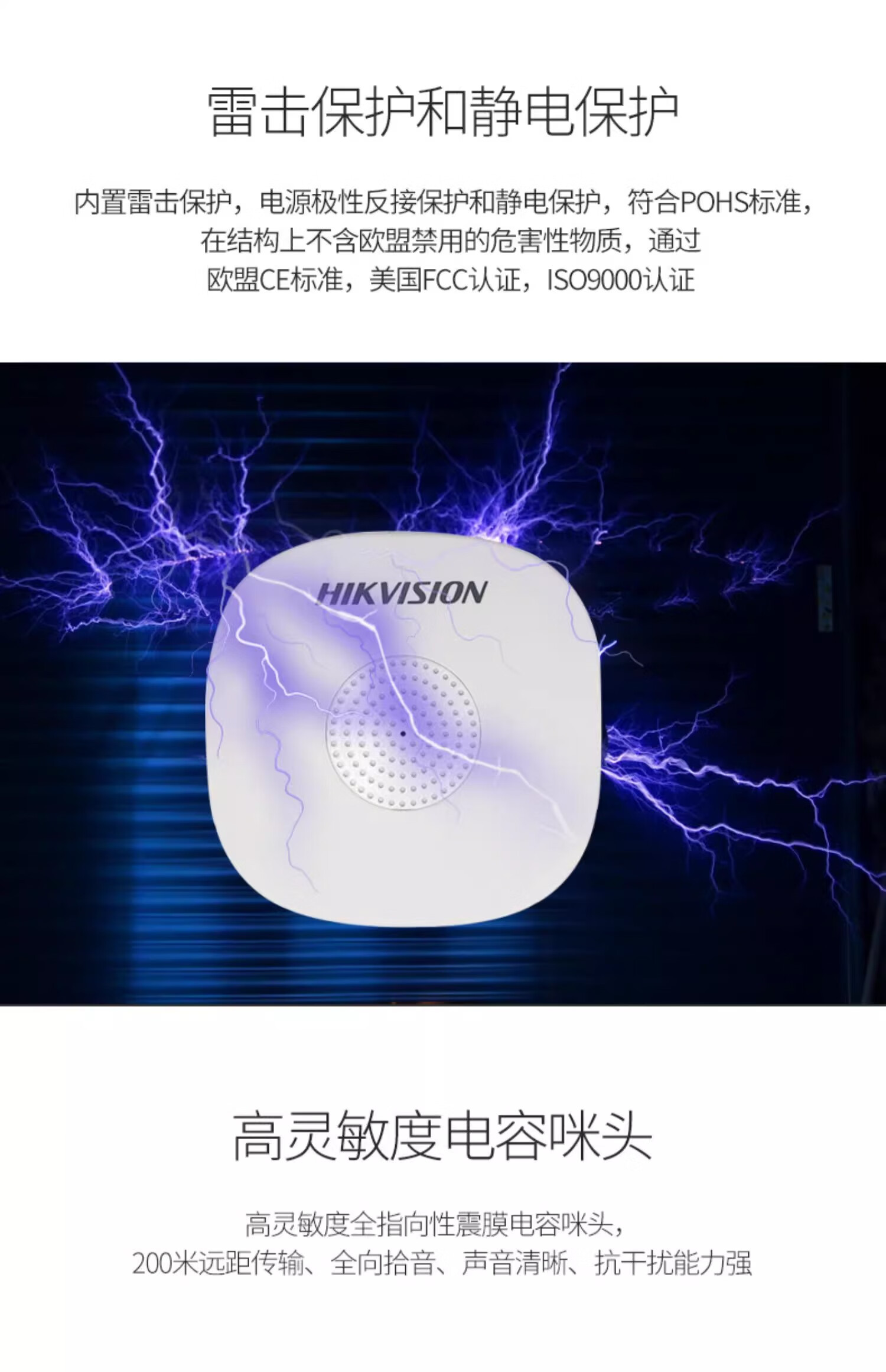海康原装适用监控咪头拾音器网络摄像机内置集音高清灵敏进口麦克风采