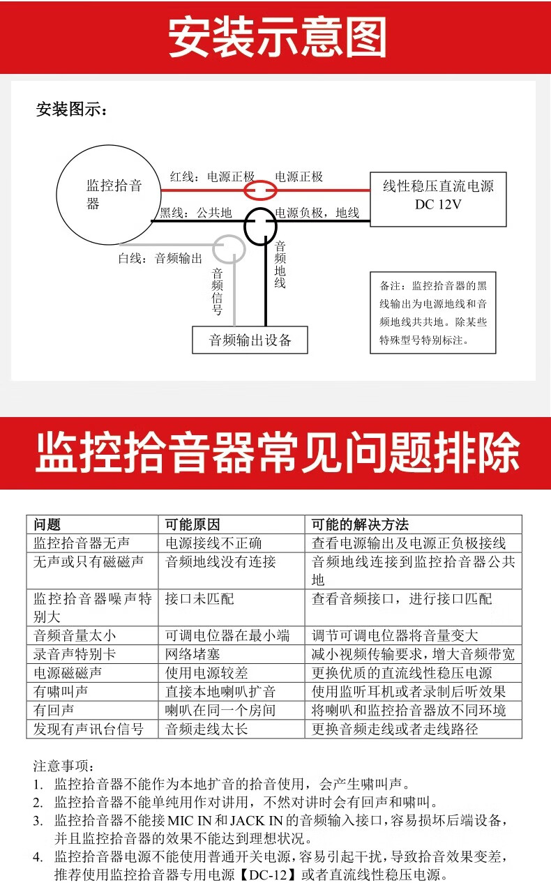 海康威视监控摄像头拾音器音频枪机半球外接拾音器家用高保真收音降噪 DS-2FP1020-B 【室内款】