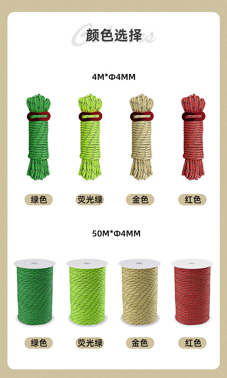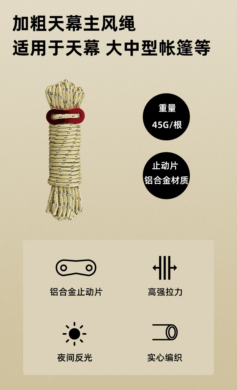 户外帐篷绳反光防风绳天幕晾衣风绳扣拉绳4米帐篷营绳 米白4MM反光