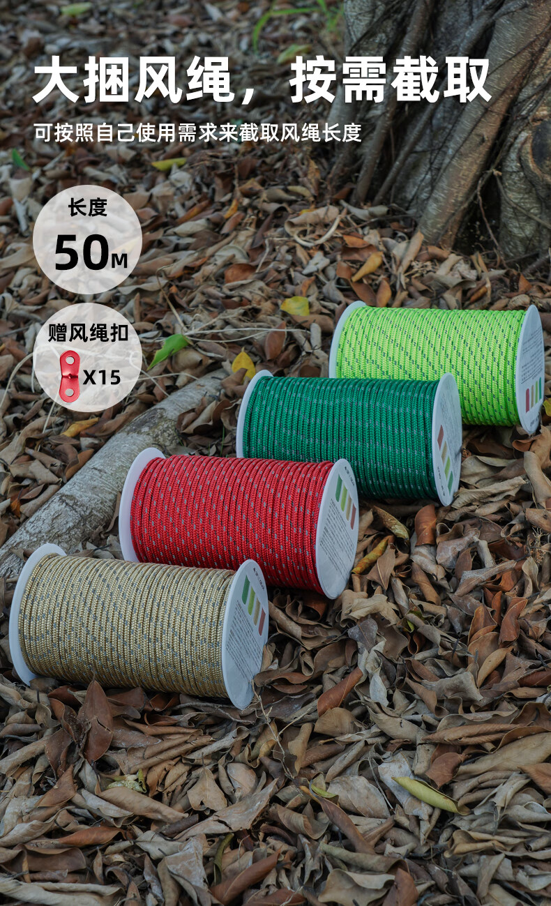 三峰出 2mm 4mm反光风绳天幕拉绳固定/帐篷风绳/地钉绳 20米送6个止动扣 4mm*4M*6根萤光绿赠送收纳袋一个