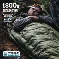 自由兵睡袋户外秋冬成人露营单双人便携睡袋学生午休家用信封冬季睡袋 旅行过夜绿色1.8kg仿羽棉8-12℃