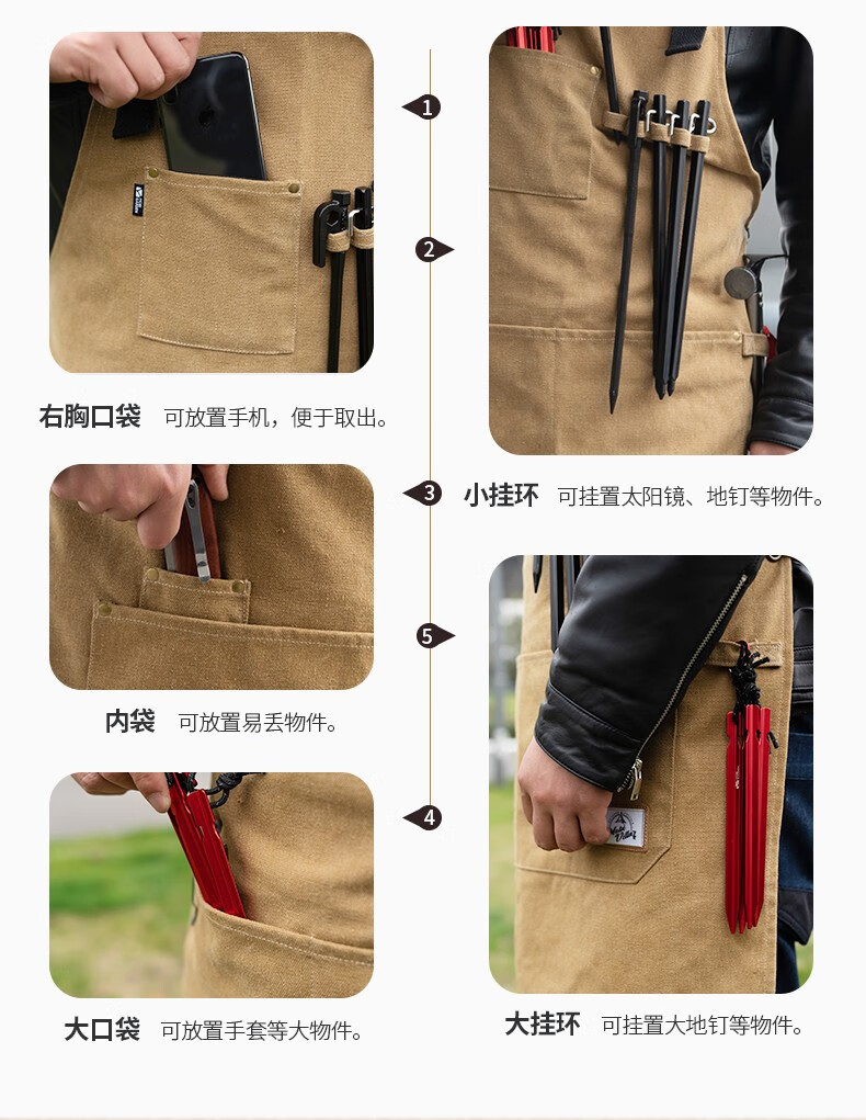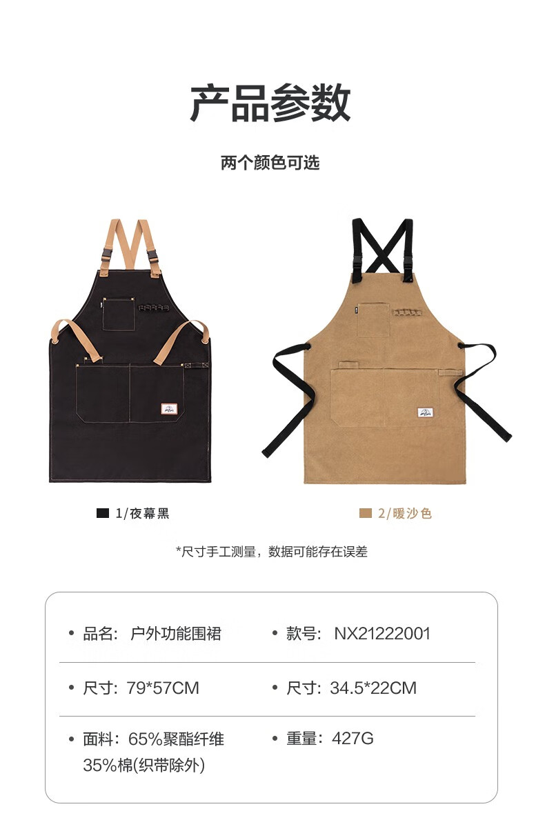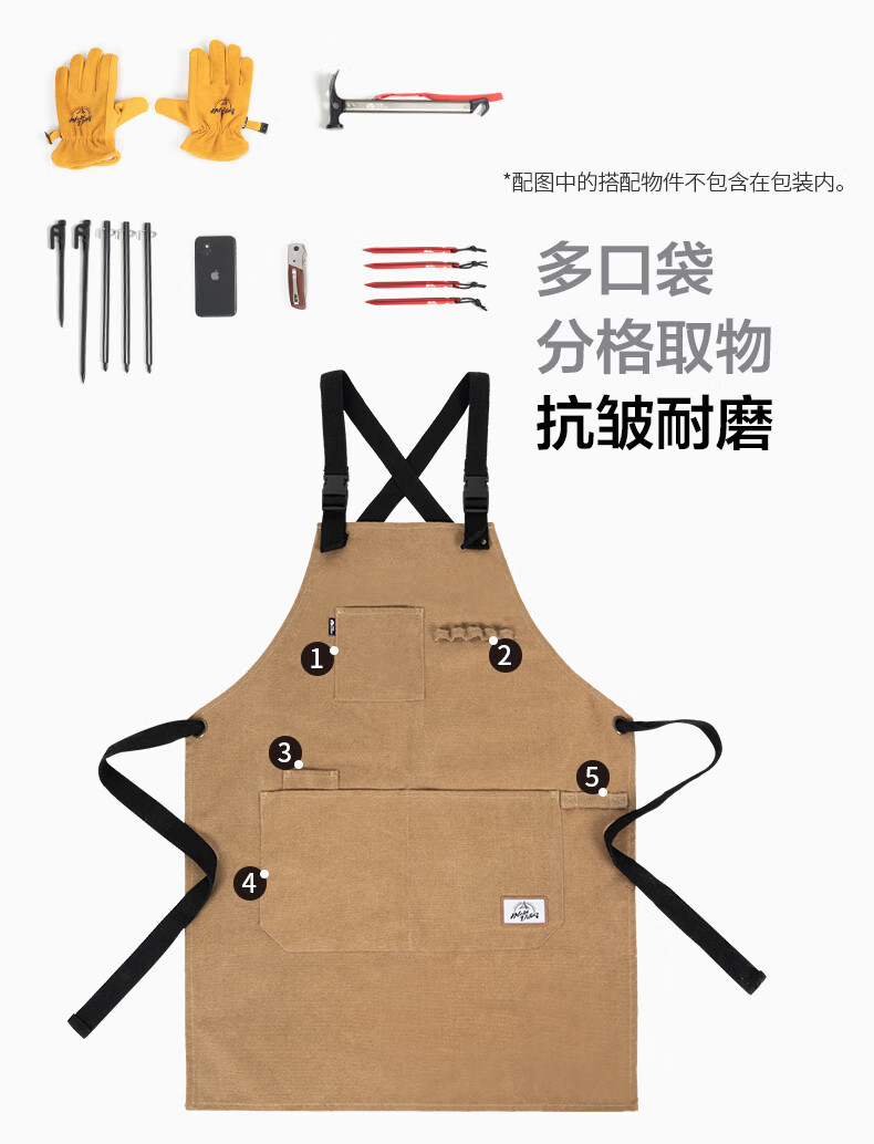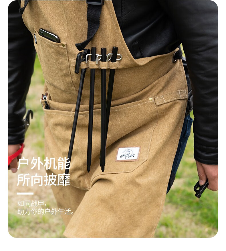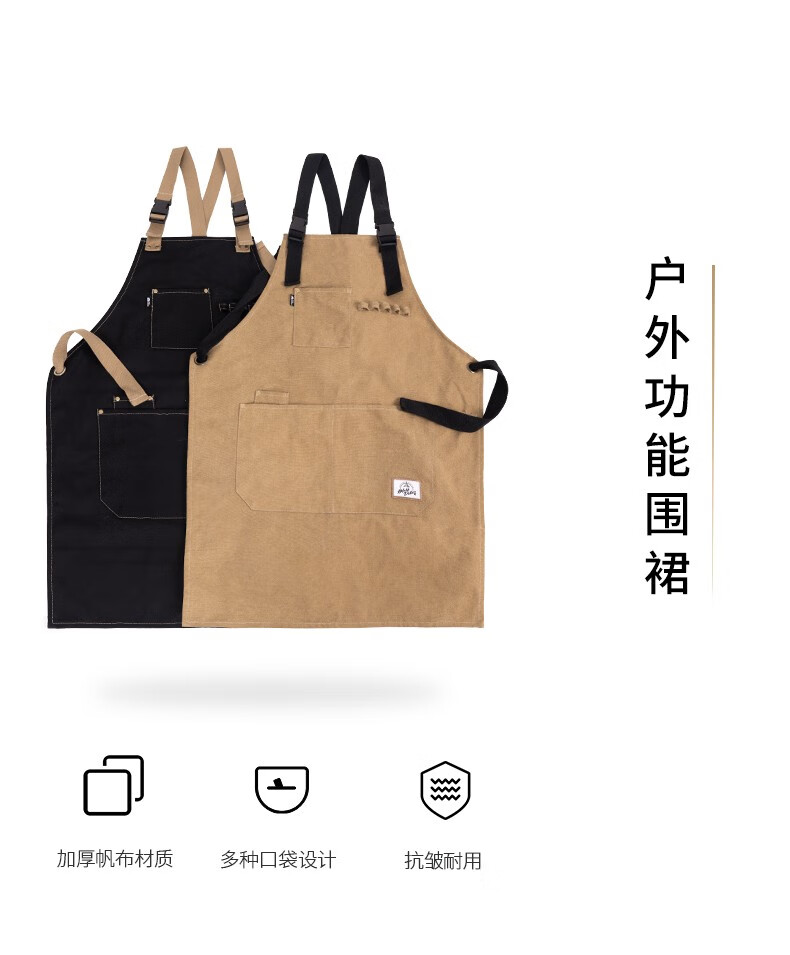 牧高笛 户外精致露营野营野餐烧烤围裙工作服带多口袋加厚帆布耐磨 暖沙色 均码