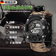 OEMG德国户外多功能战术手表野外求生防水手环运动带伞绳打火石指南针 沙漠迷彩 质保+礼盒包装