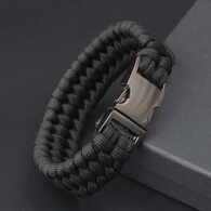 筏芯求生手环宽版伞绳 户外应急手链荒野手链手工编织DIY 黑色 净手围19CM