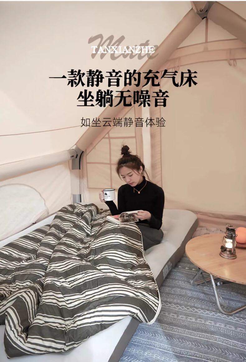 探险者充气床垫家用打地铺气垫床帐篷户外气垫野露营单双人床气垫 单人植绒充气床+手拉泵