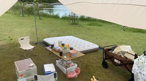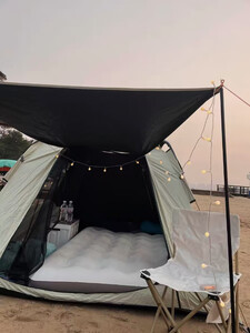 容纳人数:三口之家足够了 透气效果:感觉要铺一层毯子或者垫子之类的 便携性能:有点重,不过叠起来的体积不大 适用场景:露营或者在家当个临时床