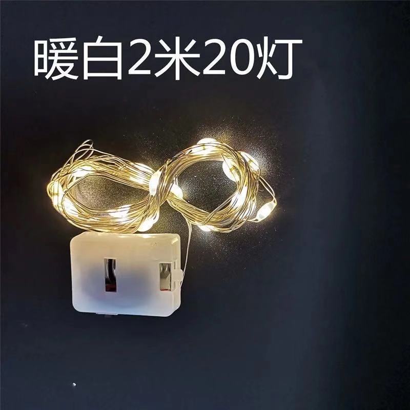 欧斯若 2条LED铜线灯串灯 暖白灯串 新年生日节日场景布置 包装礼盒饰 约2米暖白灯*2条