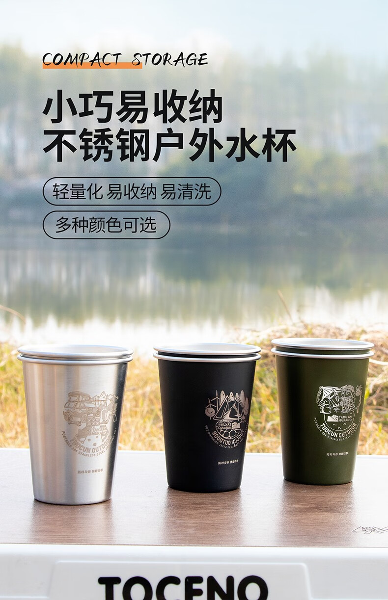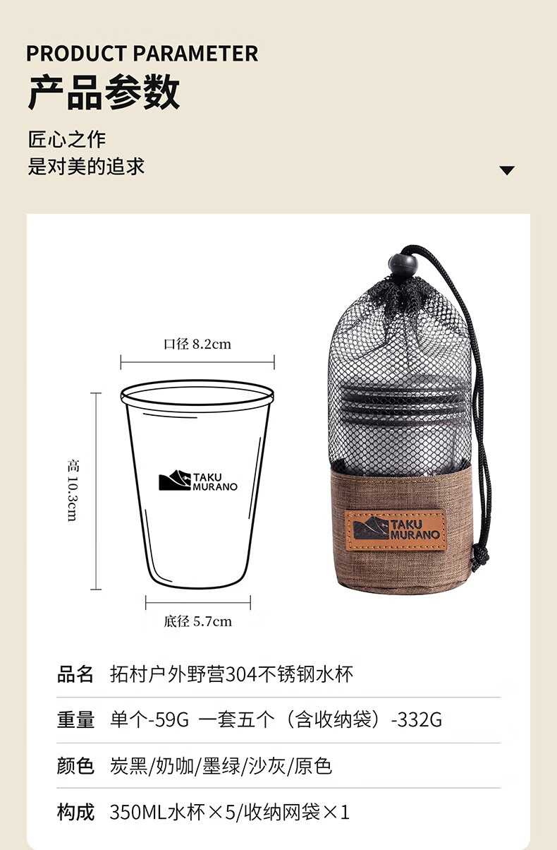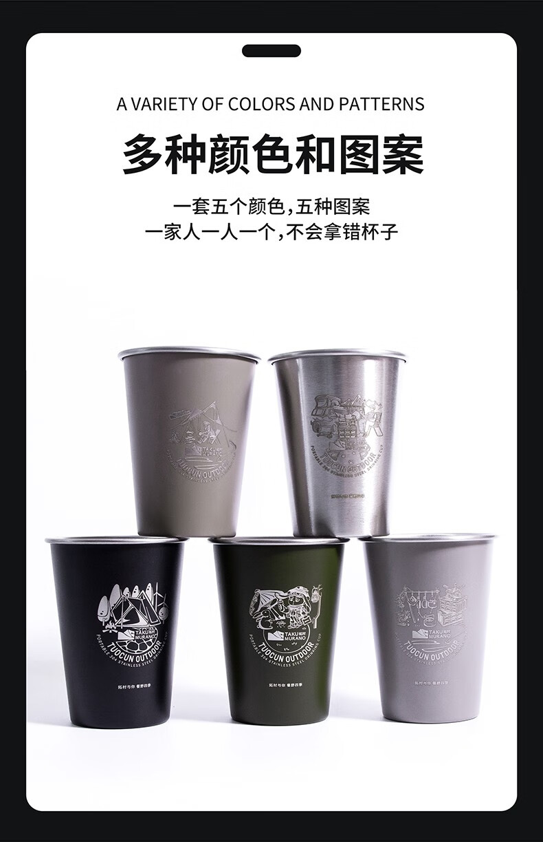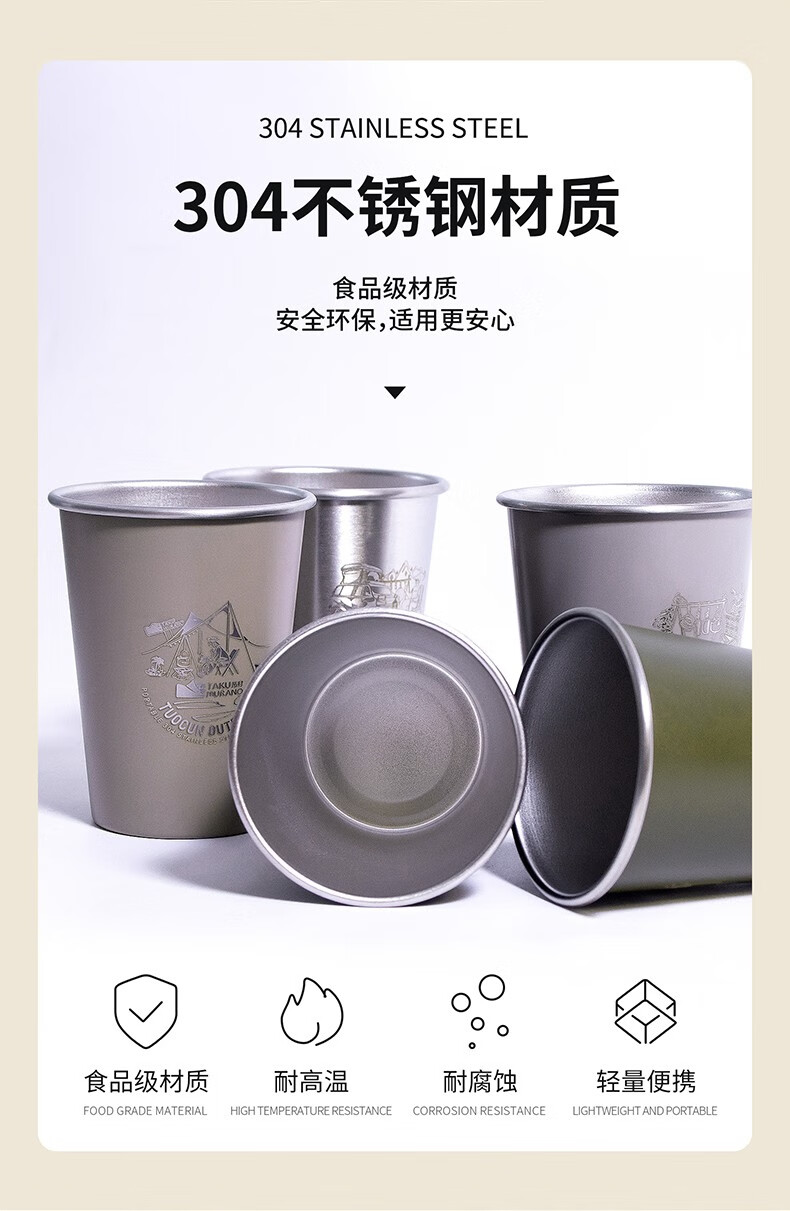 拓村户外露营便携式餐具厨具套装304不锈钢雪拉碗餐盘水杯茶杯筷子 【混合色】350ML不锈钢水杯5件套(送收纳袋)