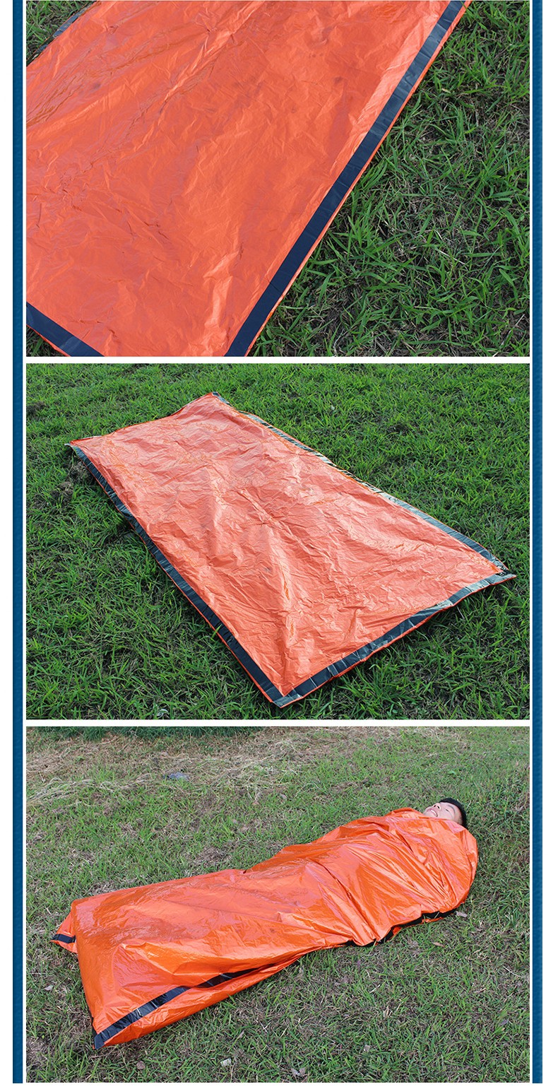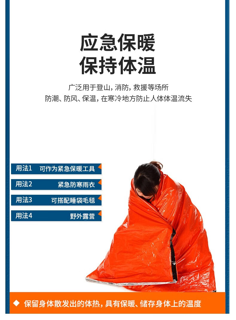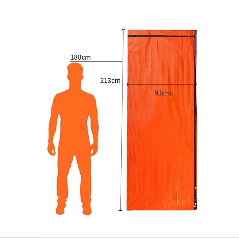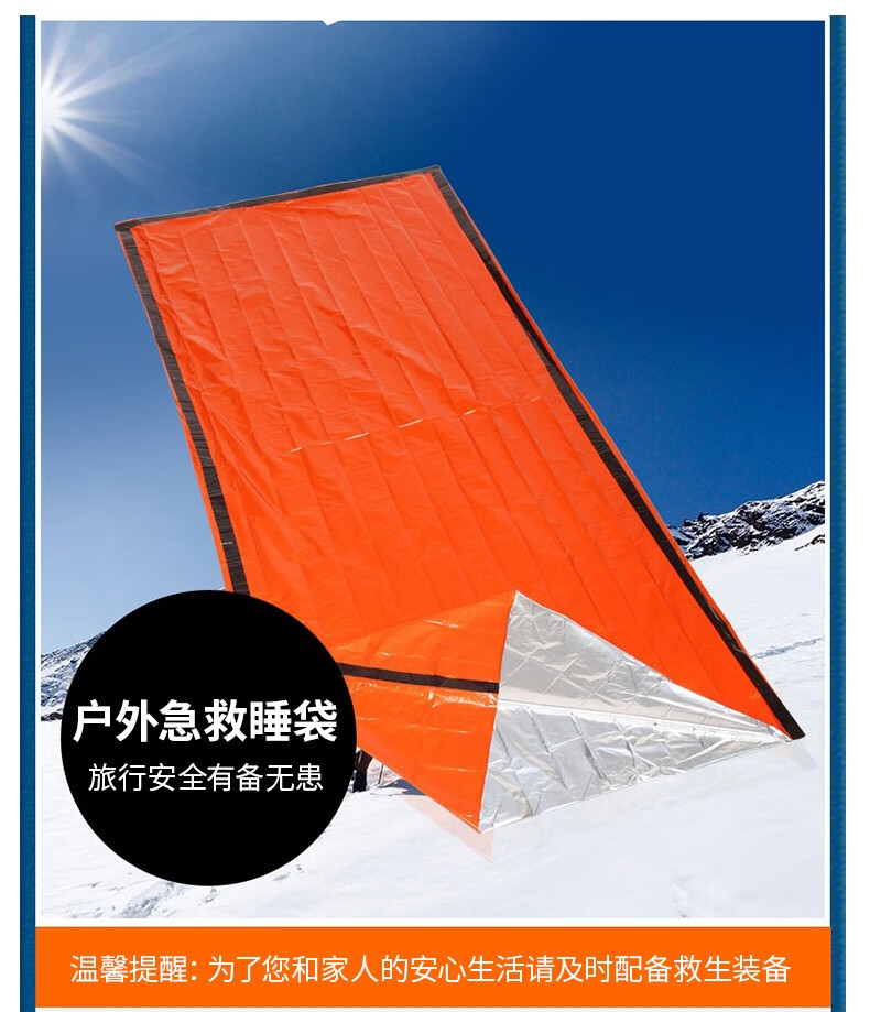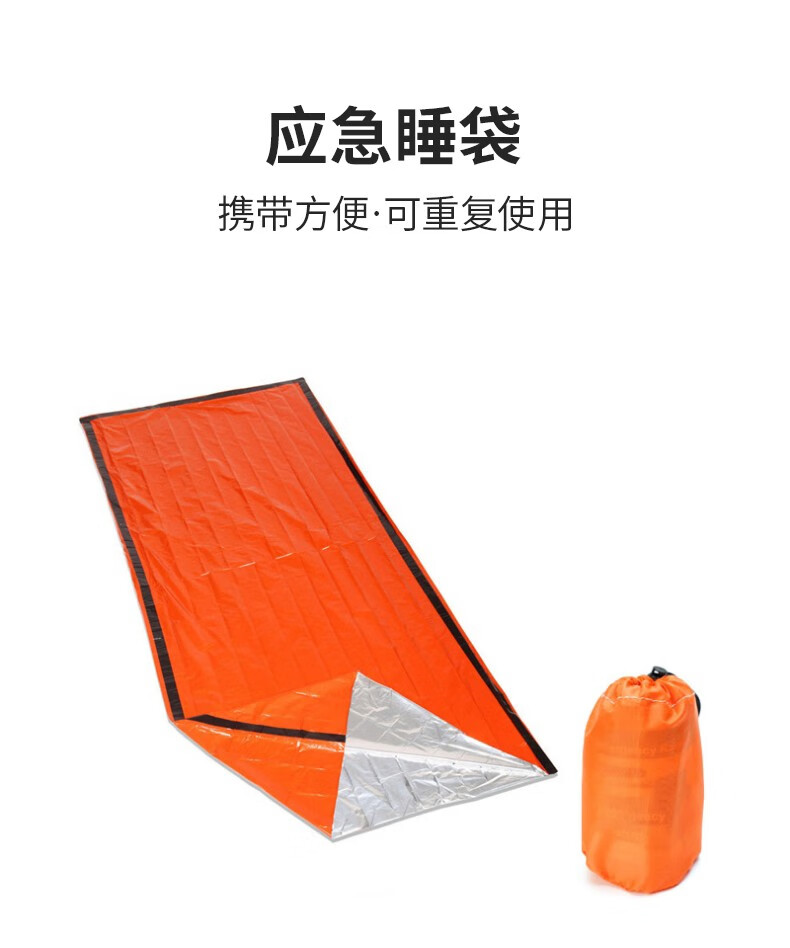 京川旭应急保温毯便携被子出差户外救生毯生存防晒毯末日装备睡袋单人帐 橙色睡袋(7字型)/送收纳袋 展开尺寸210*90cm