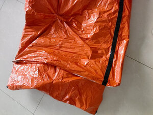 应急睡袋很好很厚实里边带一层锡膜使用保温保暖,尺寸也很大大人小孩都可以用