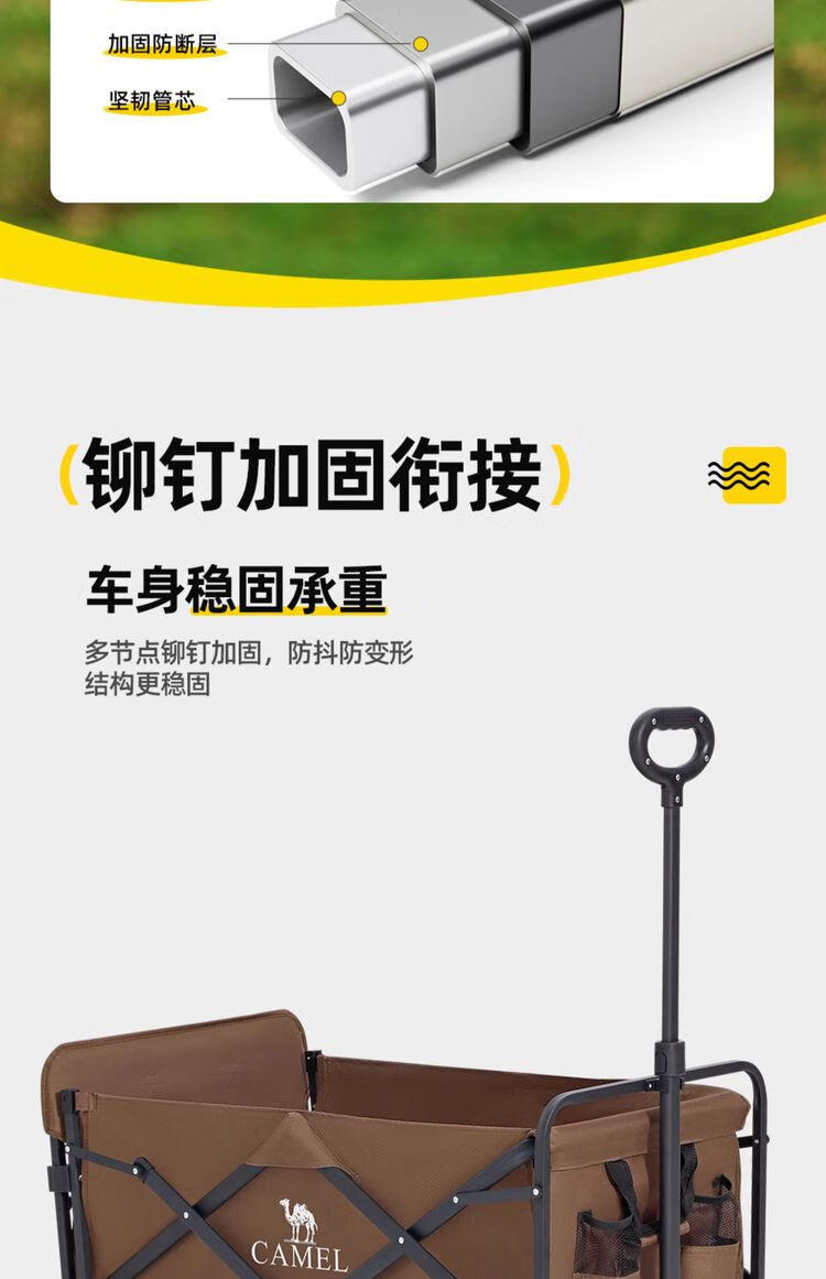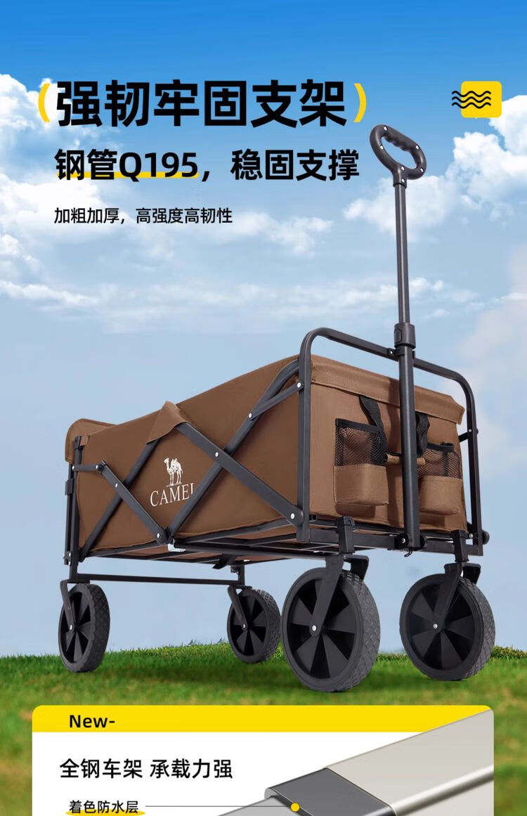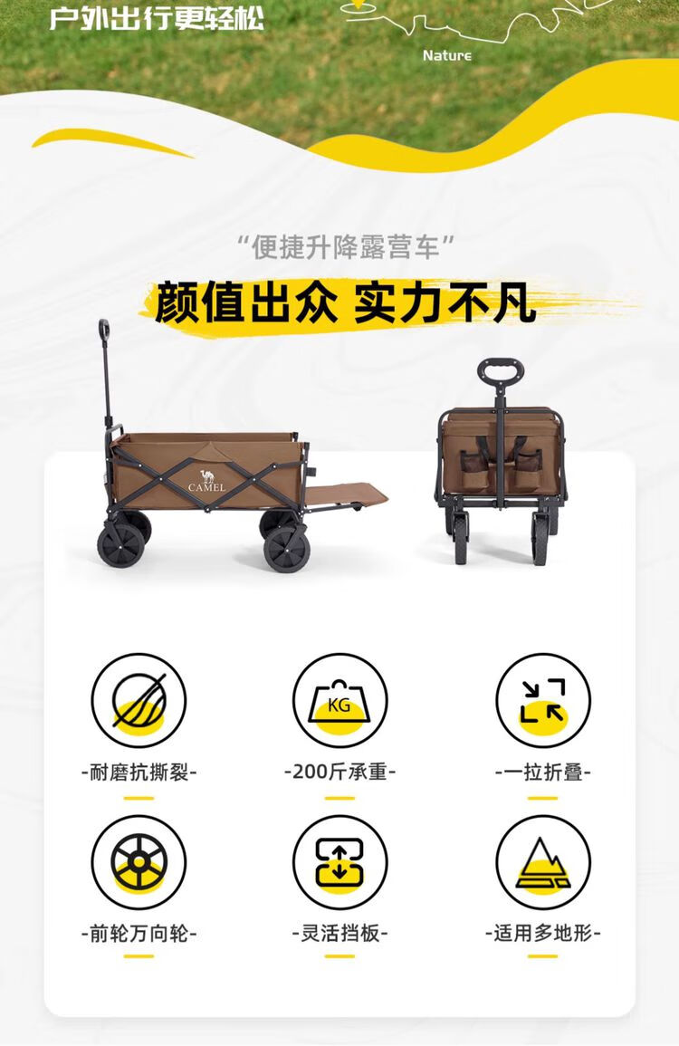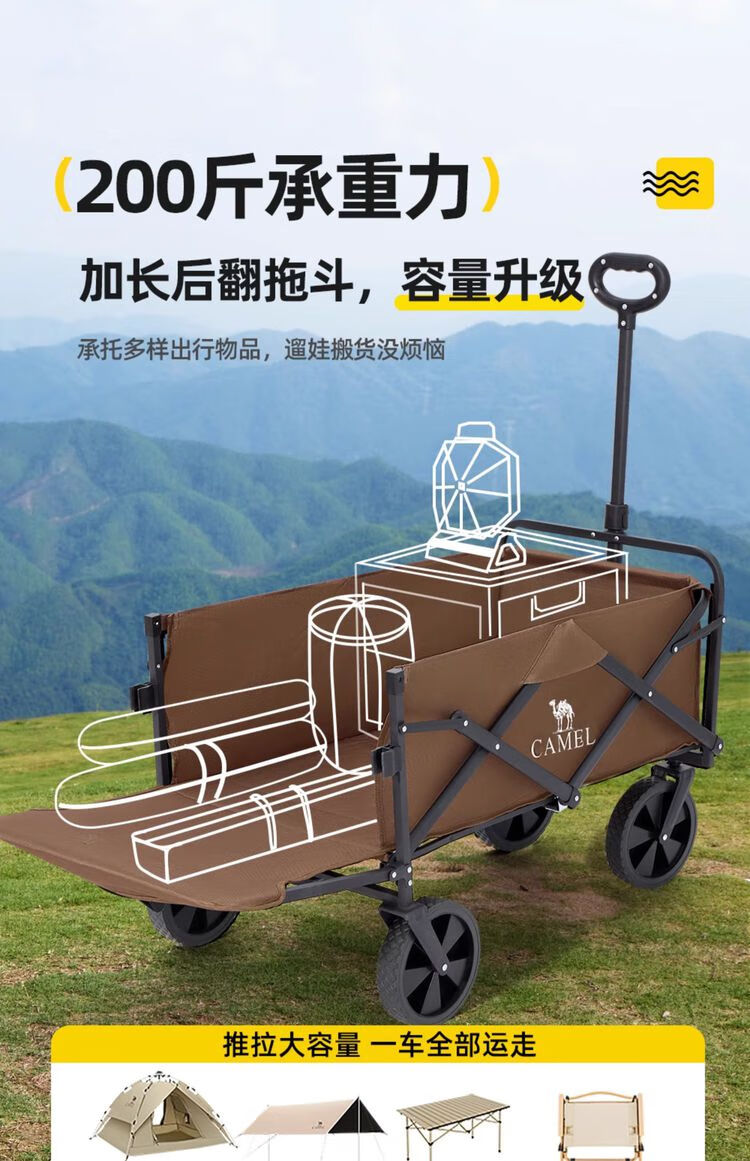 CAMEL遛遛鹅露营车家用户外折叠遛娃买菜手推拖车野餐野营遛狗小推车 棕可可, 120L ,175CJ55012