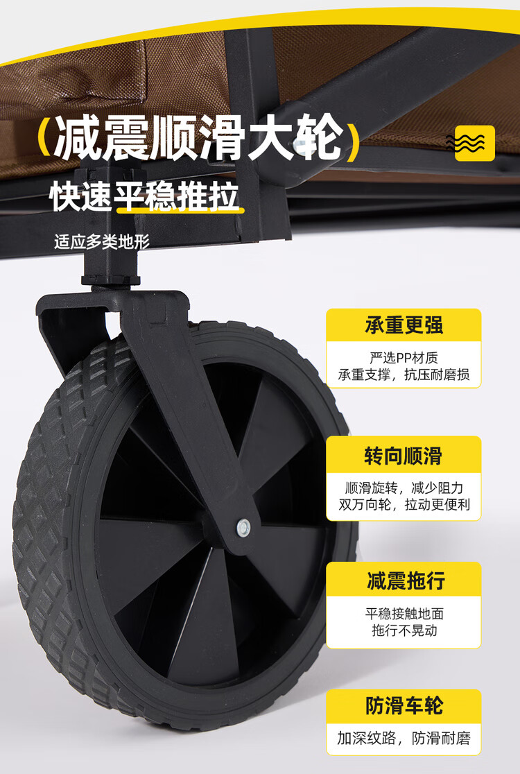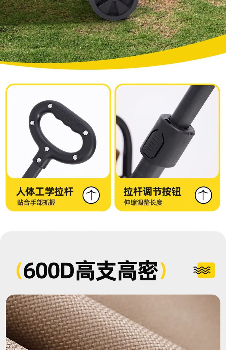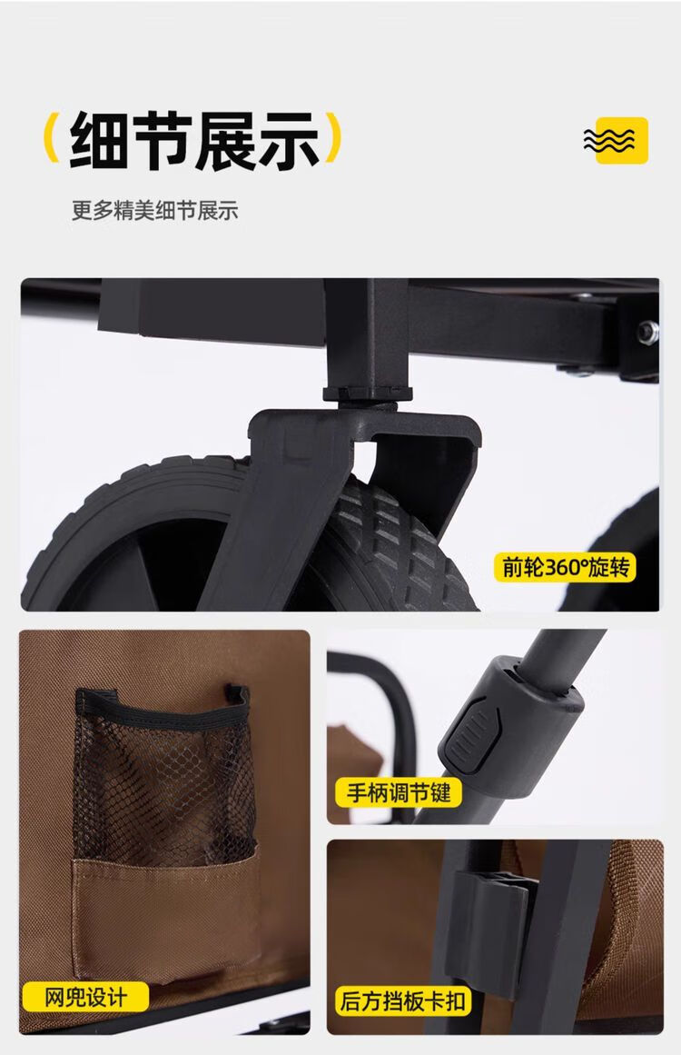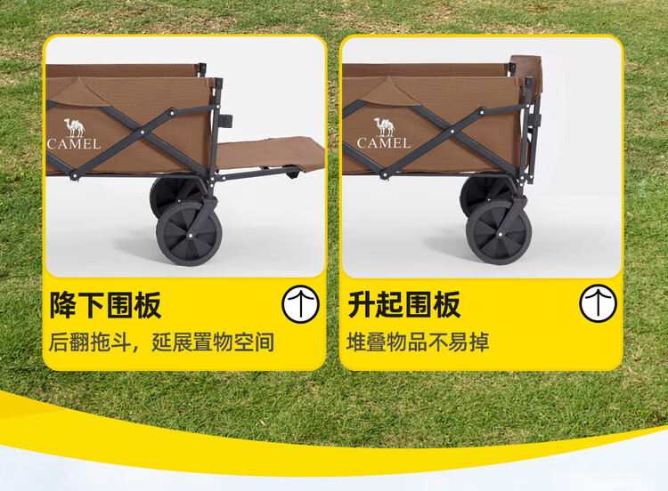 CAMEL遛遛鹅露营车家用户外折叠遛娃买菜手推拖车野餐野营遛狗小推车 棕可可, 120L ,175CJ55012