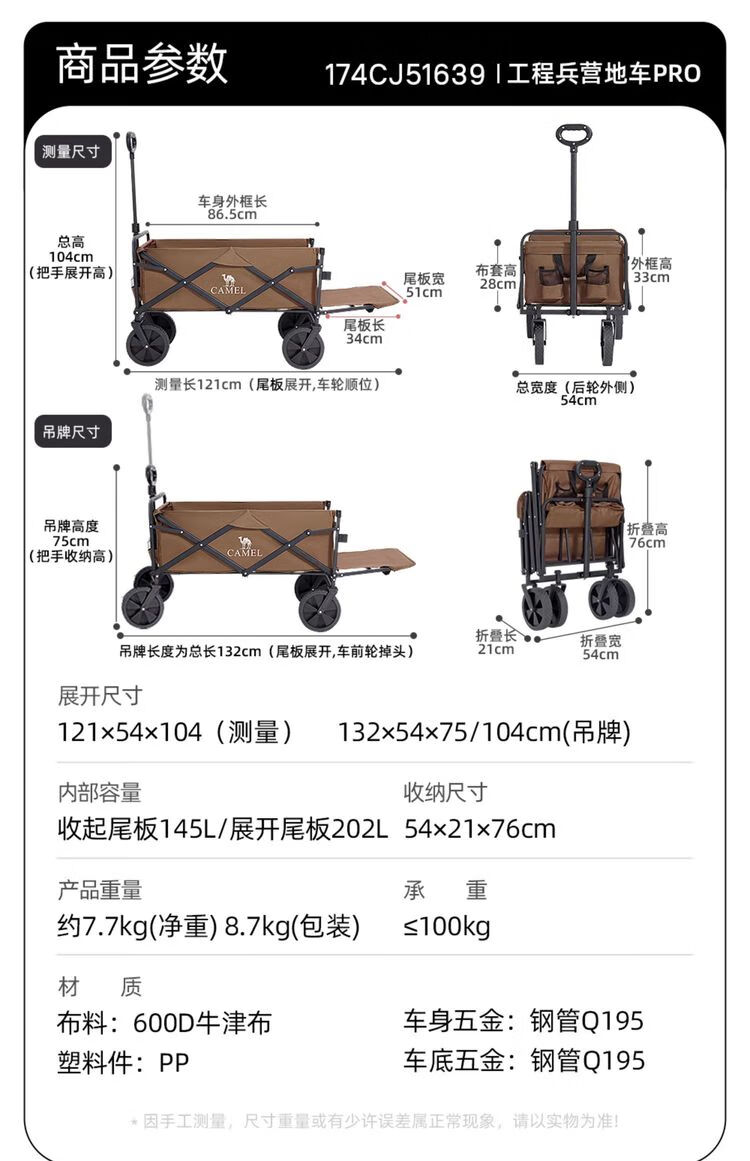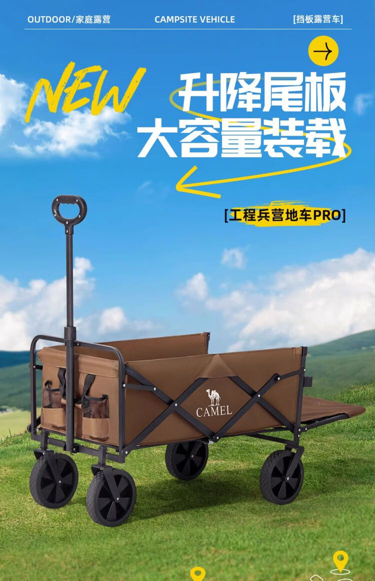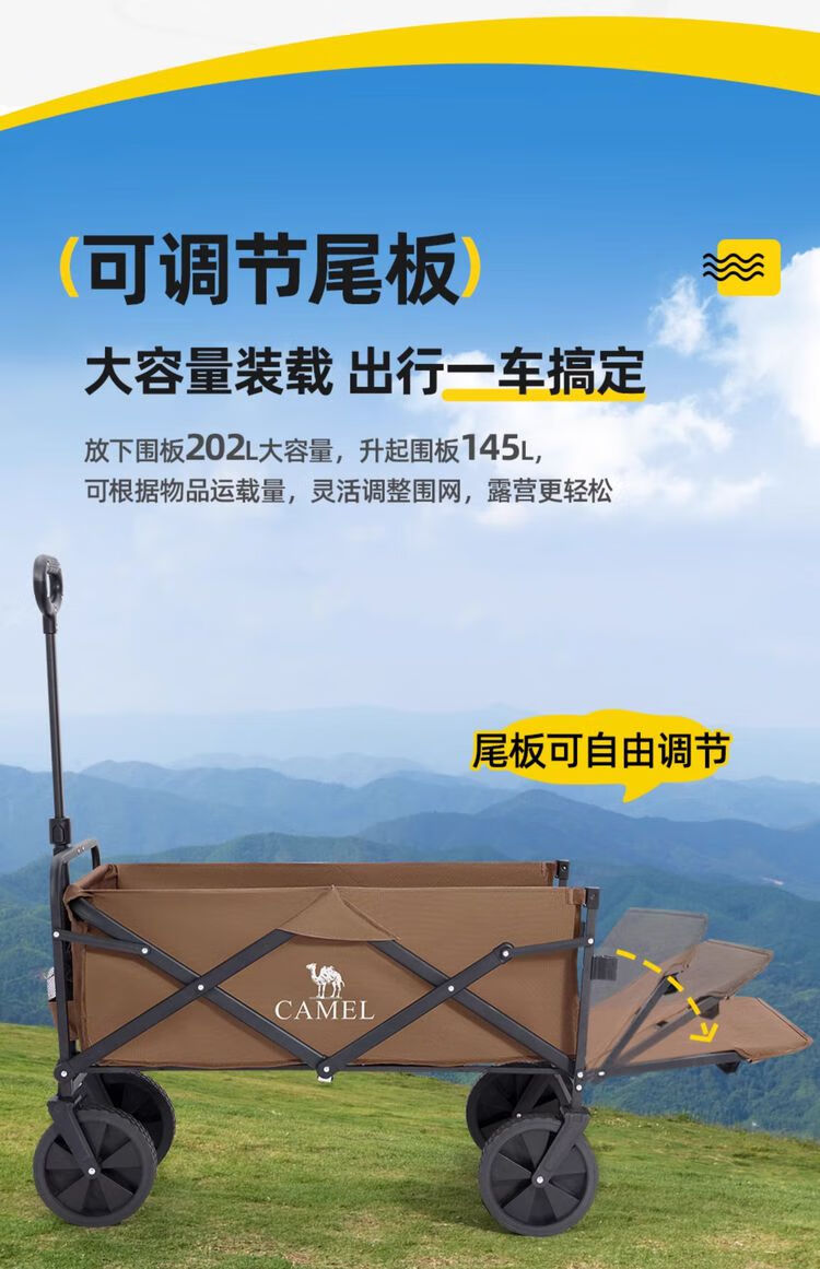 CAMEL工程兵营地车户外野餐露营车大容量可展尾板买菜溜娃遛狗推车 棕褐色 145L 无刹车 174CJ51639