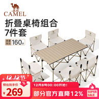 骆驼(CAMEL)户外折叠桌便携式露营桌椅套装碳钢野餐桌子蛋卷桌夜市摆摊 桌椅7件套 赠收纳袋 3010 鹅黄/米白