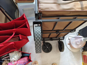 吊牌还没来得及摘 就用一次 从地下车库到家门口 平地拉了不超30米 电梯上下 拉的东西就是普通快递 重量远远低于它的承重量 今天要用的时候突然发现有个轮子支架歪了 真是让人震惊 骆驼家营地车 啥时候质量这么差了 真不敢相信 真的太气人了