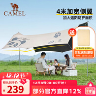骆驼(CAMEL)【山系熊猫】户外黑胶天幕野餐防晒防雨便携式蝶形遮阳布野营 12㎡ 流沙金 黑胶天幕