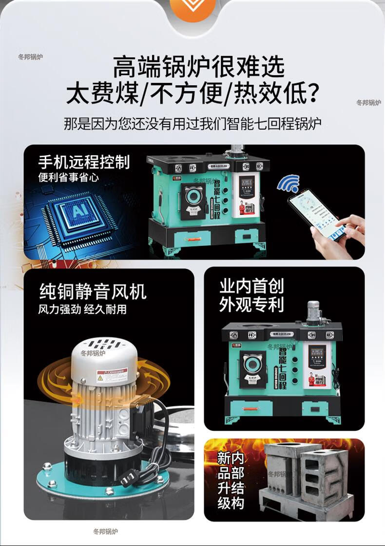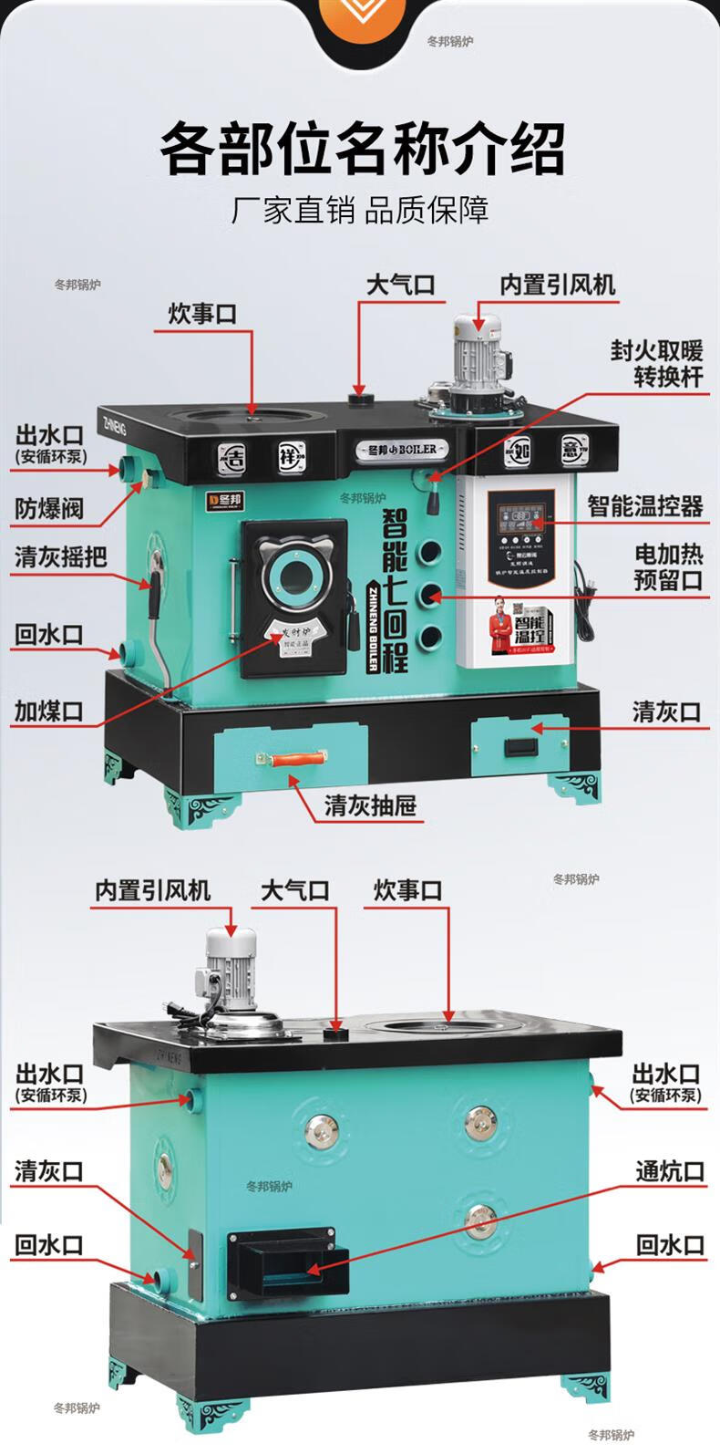 狄丽莫数控锅炉柴煤两用家用采暖炉七回程反烧通炕地暖水暖取暖炉 260#数控七回程【煤电柴款】 地暖管/暖气片通用