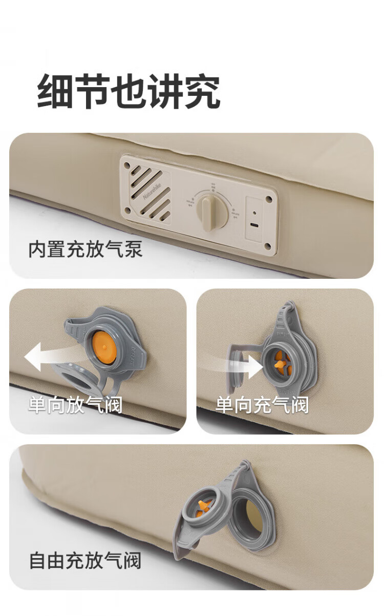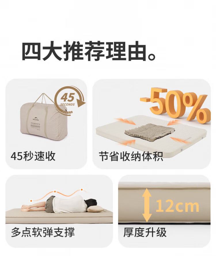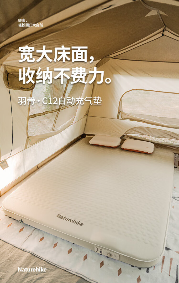 Naturehike挪客羽骨C12防潮垫户外露营地垫自动充气床垫秋冬加厚家用打地铺 黎草色/双人加宽/内置泵 一年质保