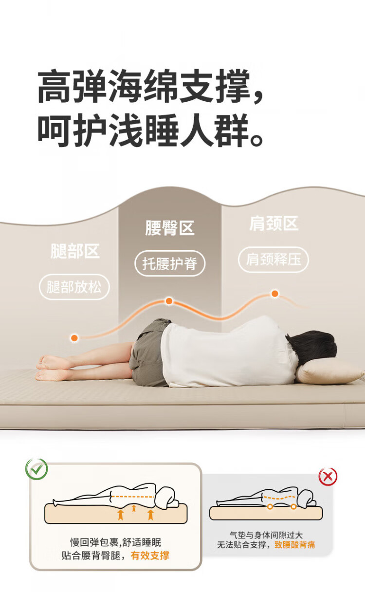 牧高笛(MOBIGARDEN)云漾充气床自动加厚PH26打地铺家用二三人户外露营床便携空气床垫 和风沙-三人/22cm(不含内置泵)