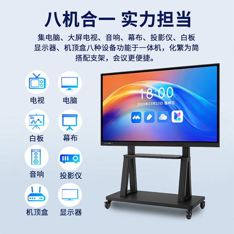 会议一体机视频会议平板多媒体教学一体机触摸屏电脑智能互动电子白板 会议触控大屏100寸 86寸会议一体机 安卓系统+推车