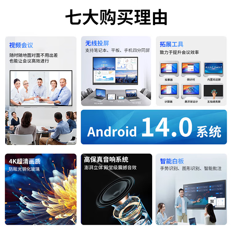(HUAWEI海思芯)电视机会议平板65/85/100英寸无线投屏4K触屏教育一体机电子白板 75LED 单系统+挂架