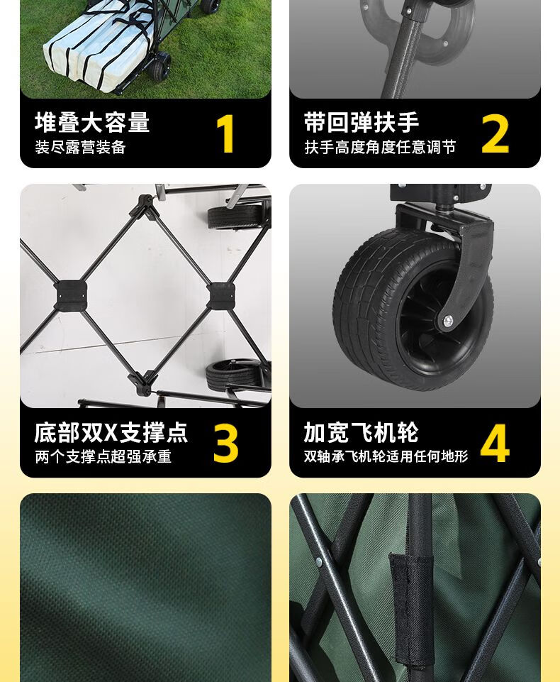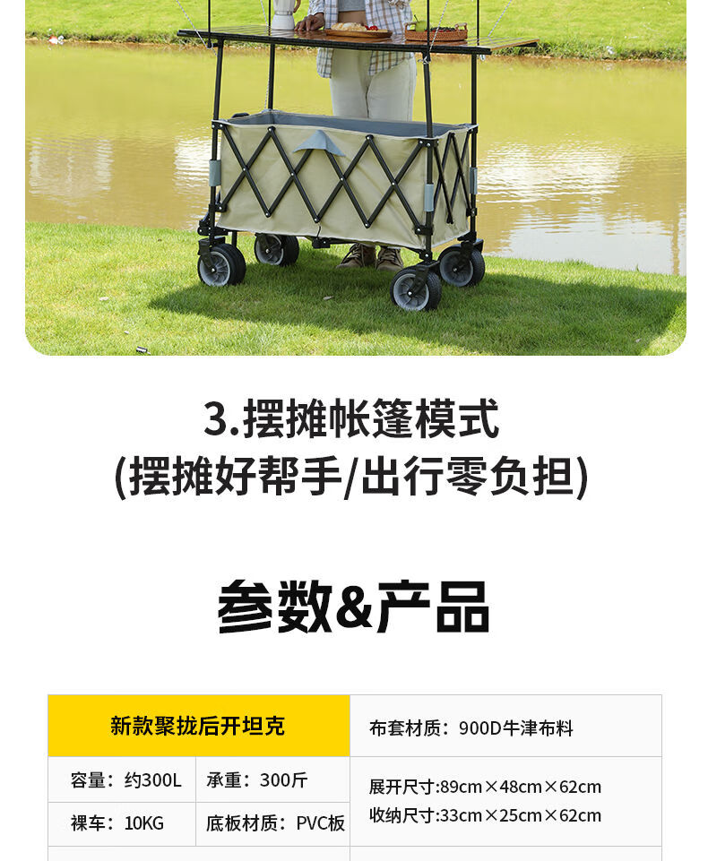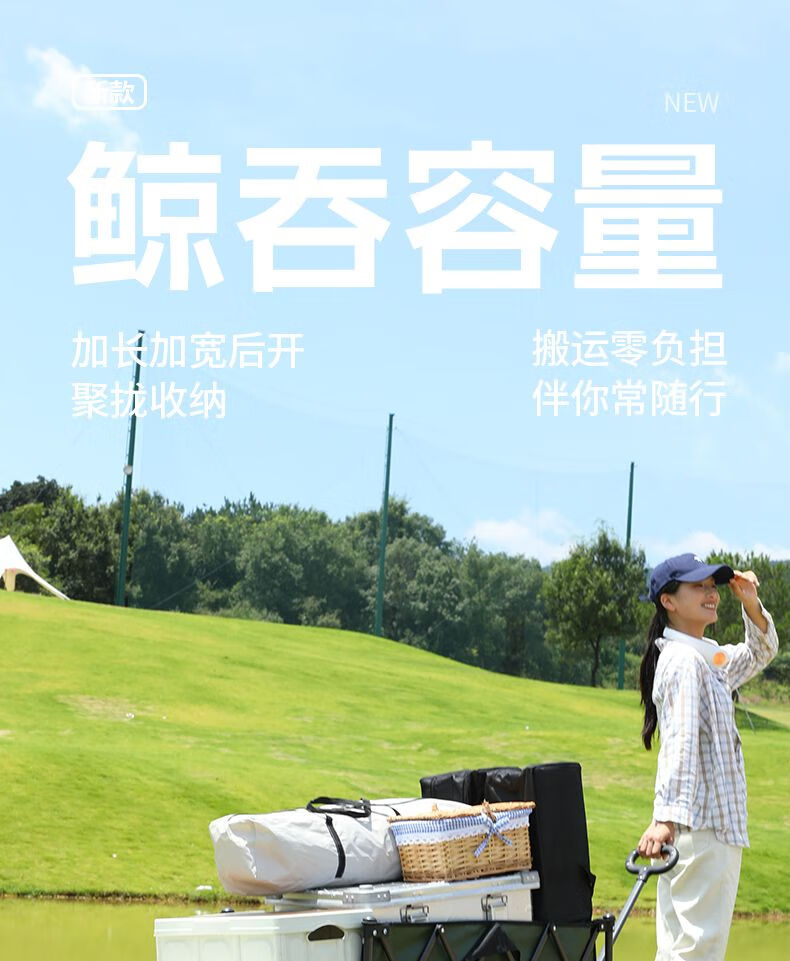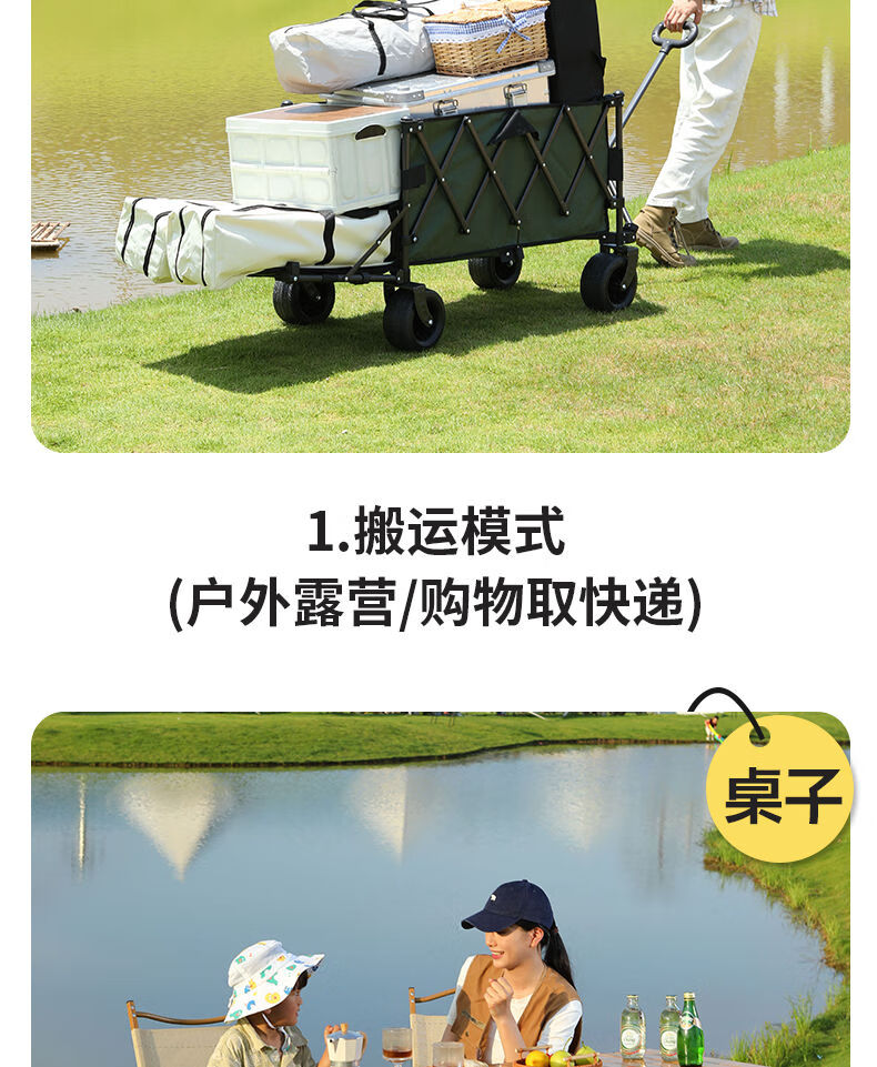 疆屿露营车野营户外折叠手推车野餐摆摊拖斗车儿童可躺聚拢营地车