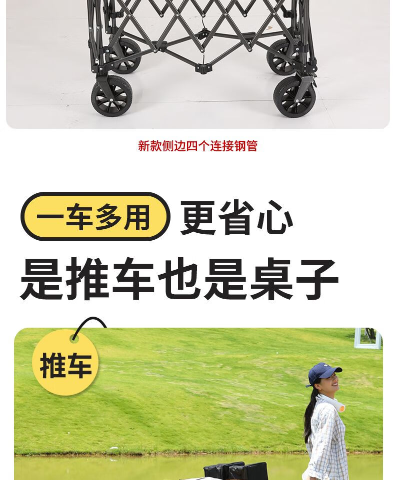 北欢露营车折叠车溜娃车买菜车狗狗宠物推车可开后斗F02黑+桌板
