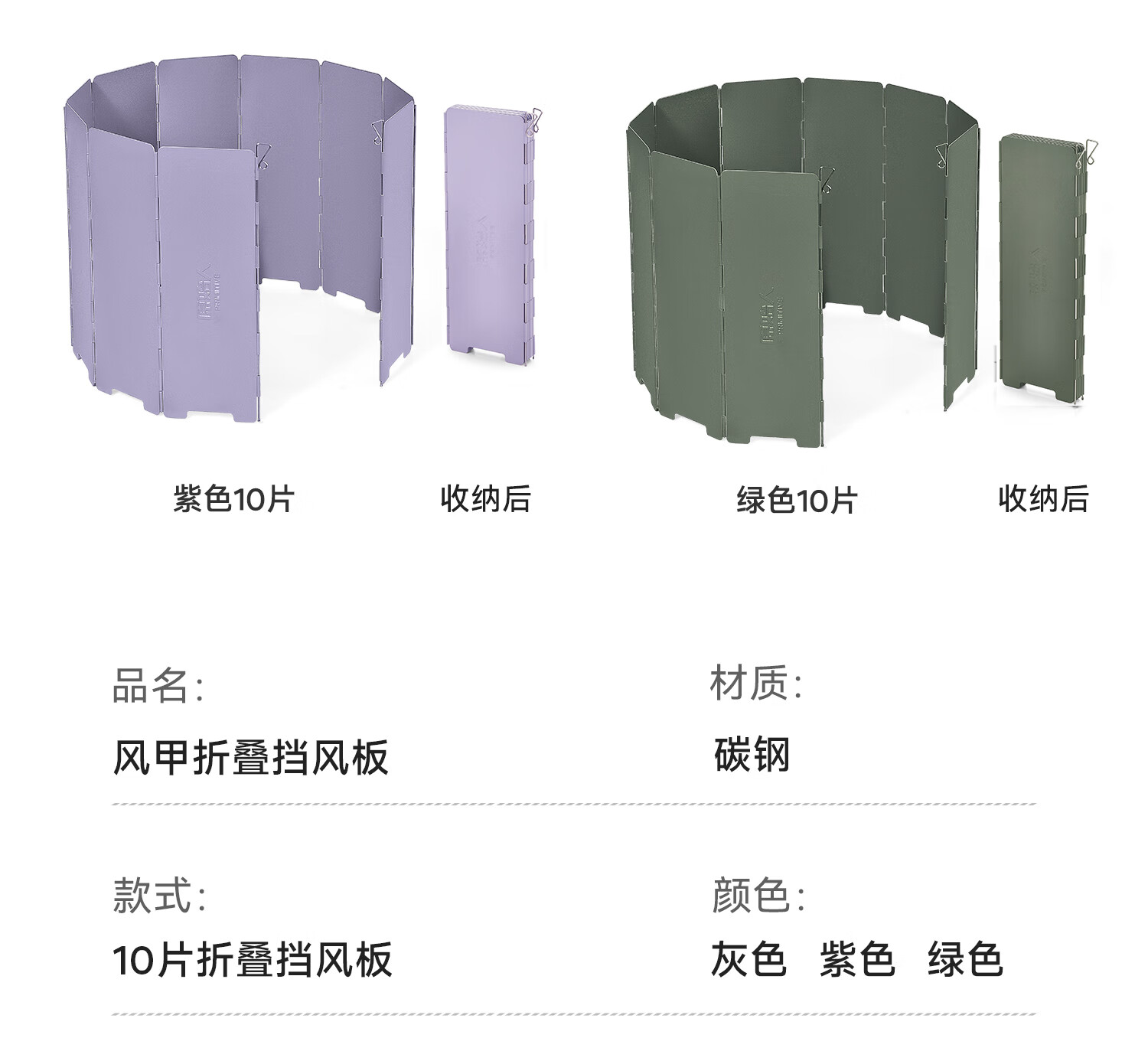 原始人(The Primitive)户外卡式挡风板炉具围挡防风保温板煤气灶防风罩防风圈防风板台 暮光紫10片装【赠收纳盒】