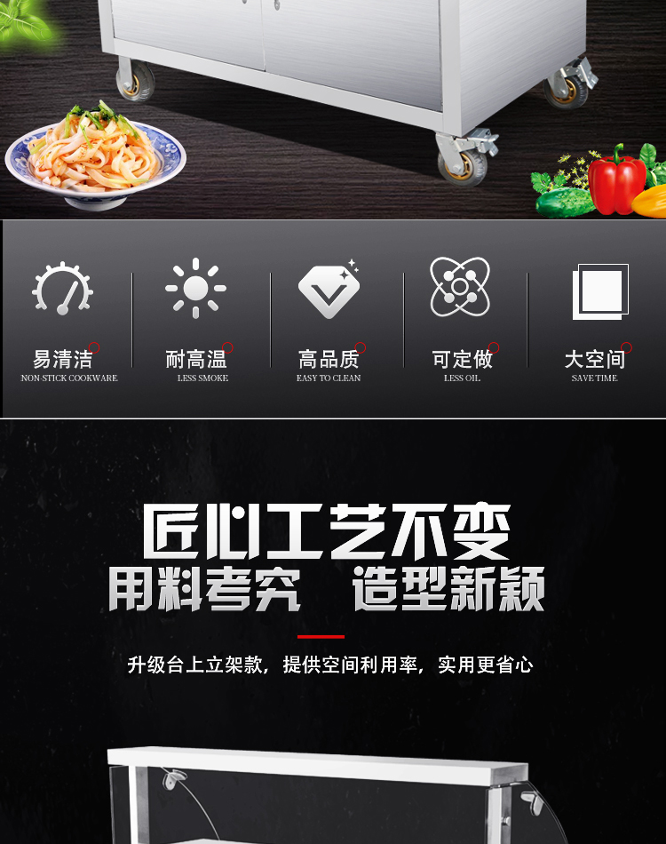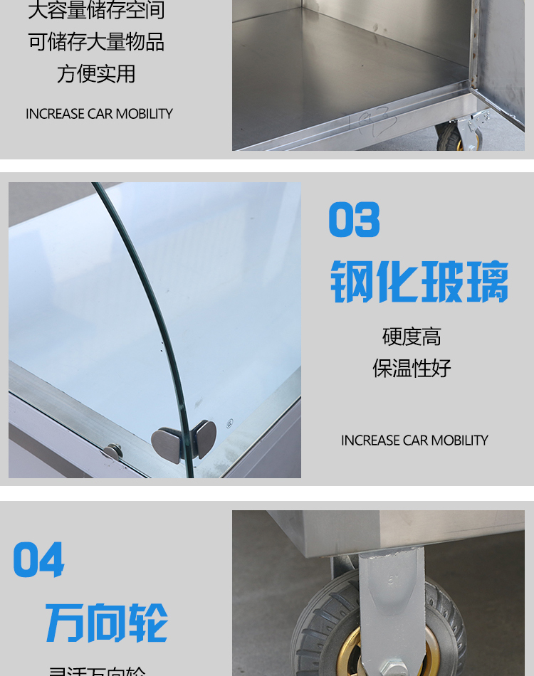 柏潮多功能金属承重便携新款可移动带轮室外商用煮汤卤味可折叠摆摊车 D左加长3层+气瓶架 不带广告框