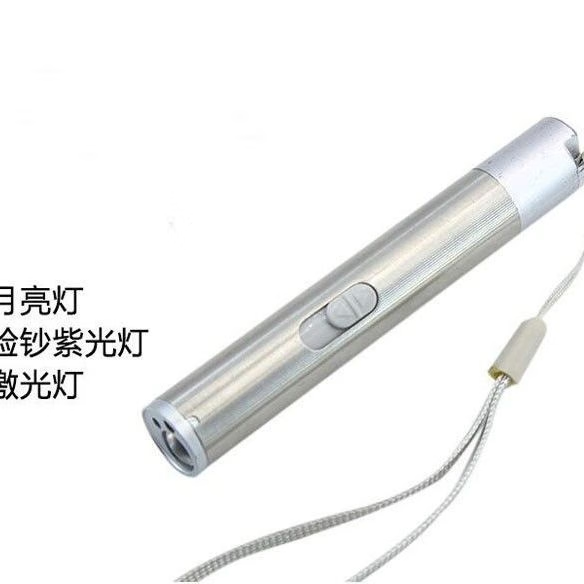 9LED验钞灯手电筒 紫外线验钞机 强光小电筒铝合金小型照钱检测笔防伪便携式 固化灯手持UV电筒 银/灰随机一个装(9灯珠)