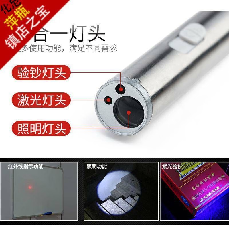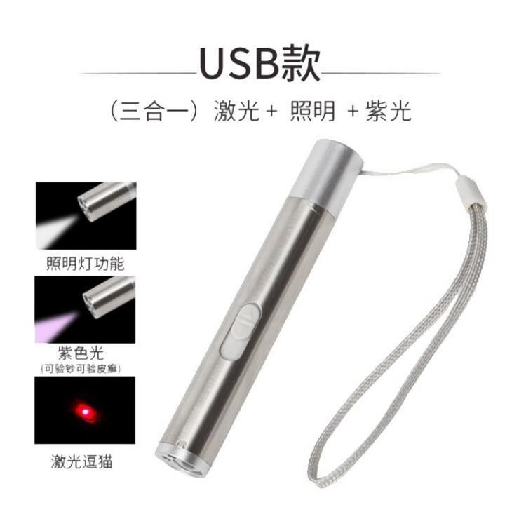 【多功能手电筒】强光照明+激光笔+验钞灯三合一 可充电家用手电筒紫外线教鞭逗猫LED户外远射 激光远射+紫光验钞+白光照明(电池款三合一)