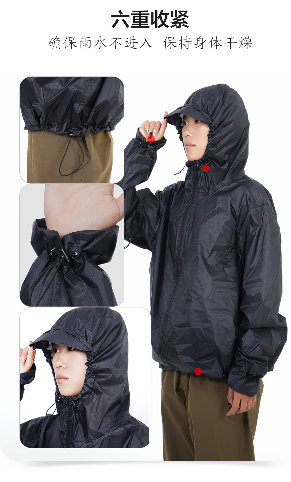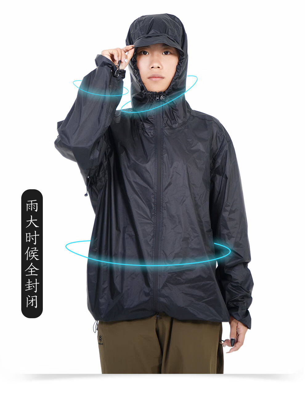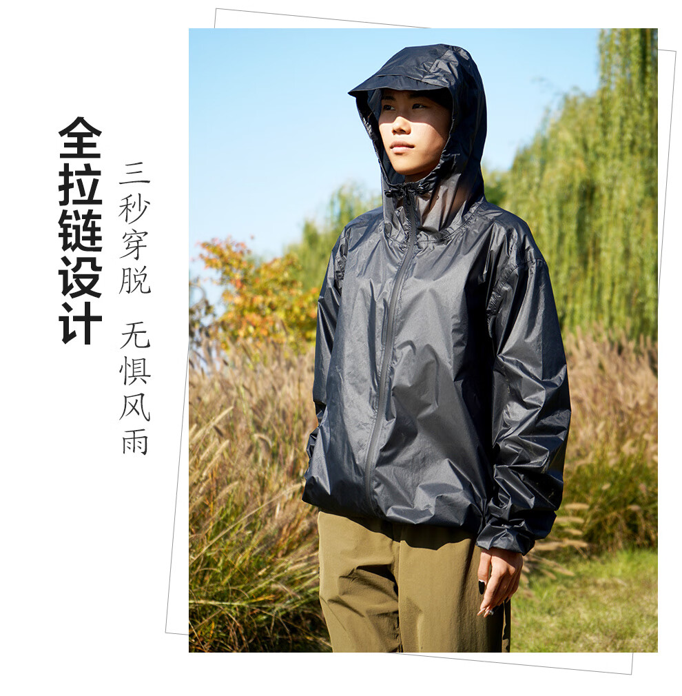 静星户外男女通用单人徒步旅游雨衣全拉链防风防雨防雪冲锋雨衣 灰蓝色 M